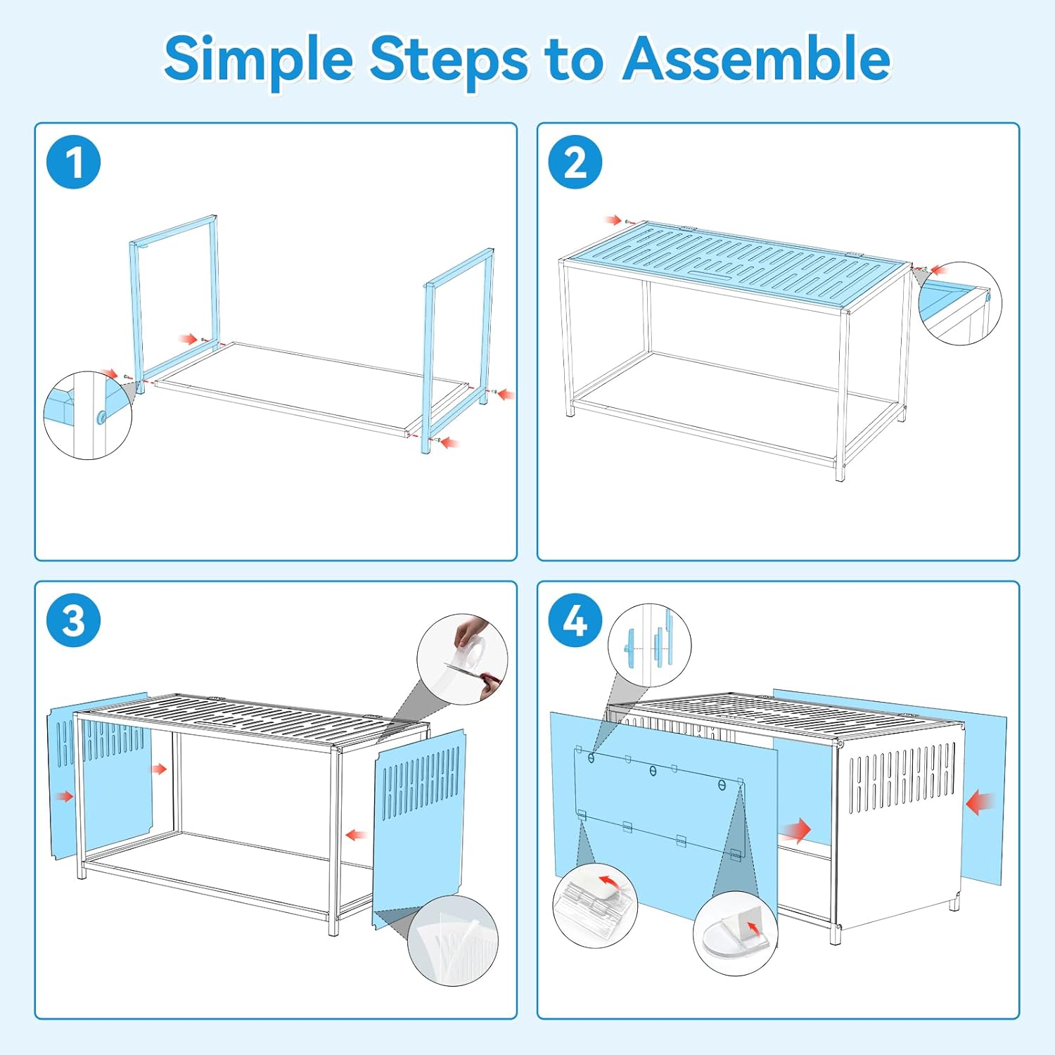 Quick 20-Minute AssemblySetup made simple: Attach the frame with just 8 screws and secure the panels using sturdy adhesive strips—no extra tools needed. Sleek lines and transparent walls blend beautifully with any home décor.