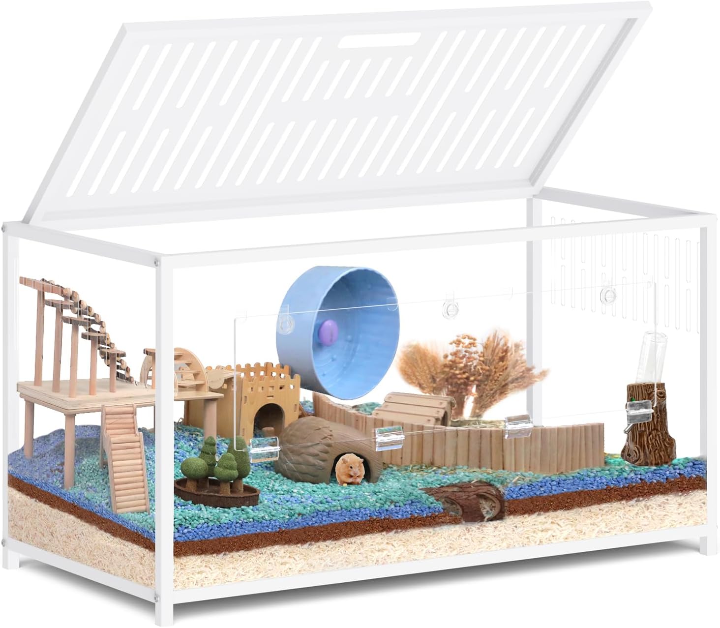 Large Metal Hamster Cage, Chew Proof Syrian Hamster Cage & Habitat with Acrylic Panels, Top Open, Breathable