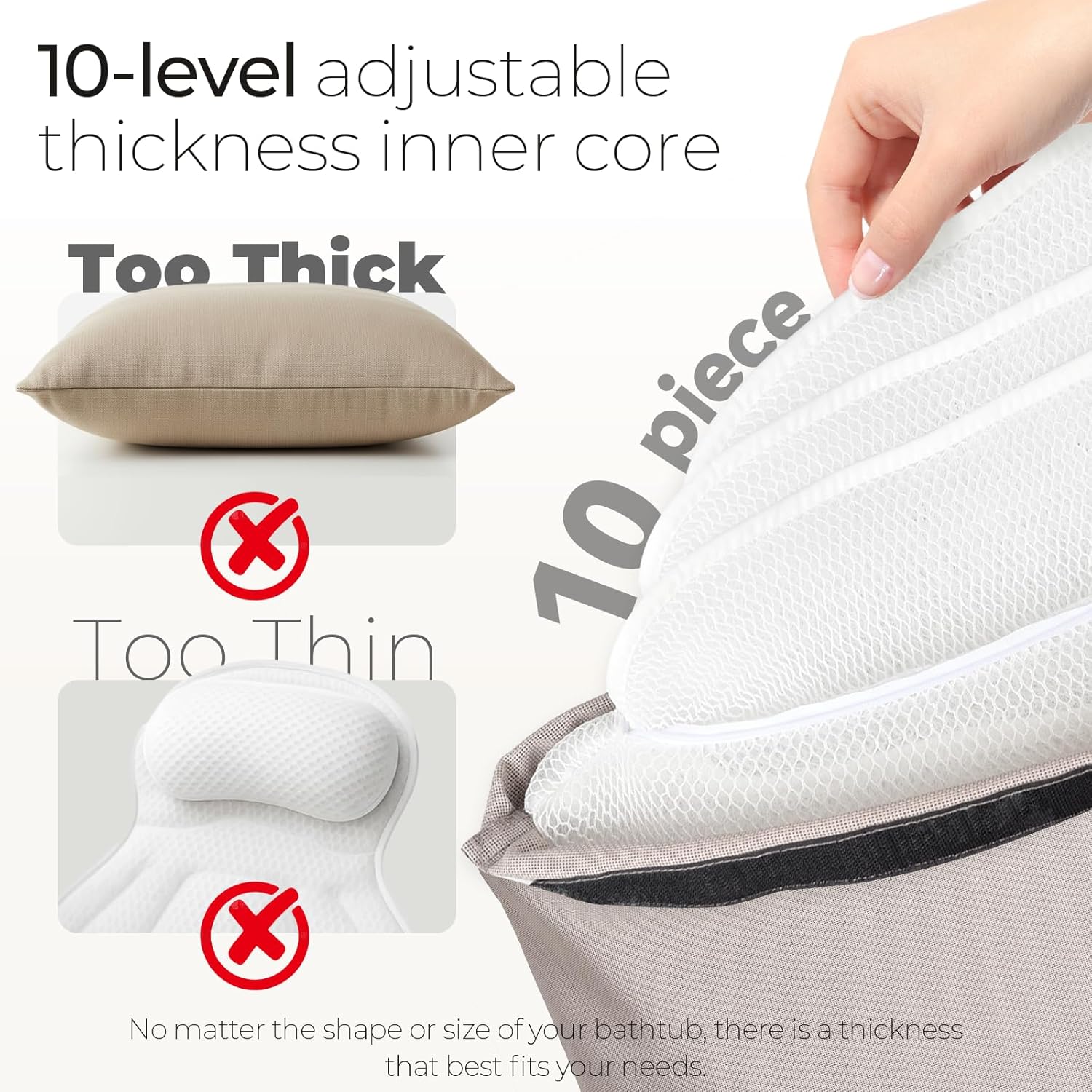 Luxury Bathtub Pillow, Skin-Friendly Cushion, Support Back, Neck & Head, Non-Slip, Adjustable Thickness, Washable