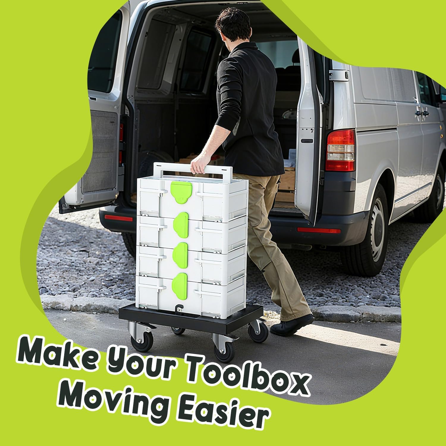 Convenient Transport & Labor-Saving Efficiency: This metal tool cart for festool is designed for Systainer & T-LOC toolboxes, making transportation a breeze. With it, whether at construction sites, workshops, or outdoor jobs, you can move your toolboxes more freely & flexibly, significantly enhancing your mobility. Besides, It also helps organize your toolbox system, reducing clutter and making tools pickup smoother, so your workflow stays smooth and hassle-free.