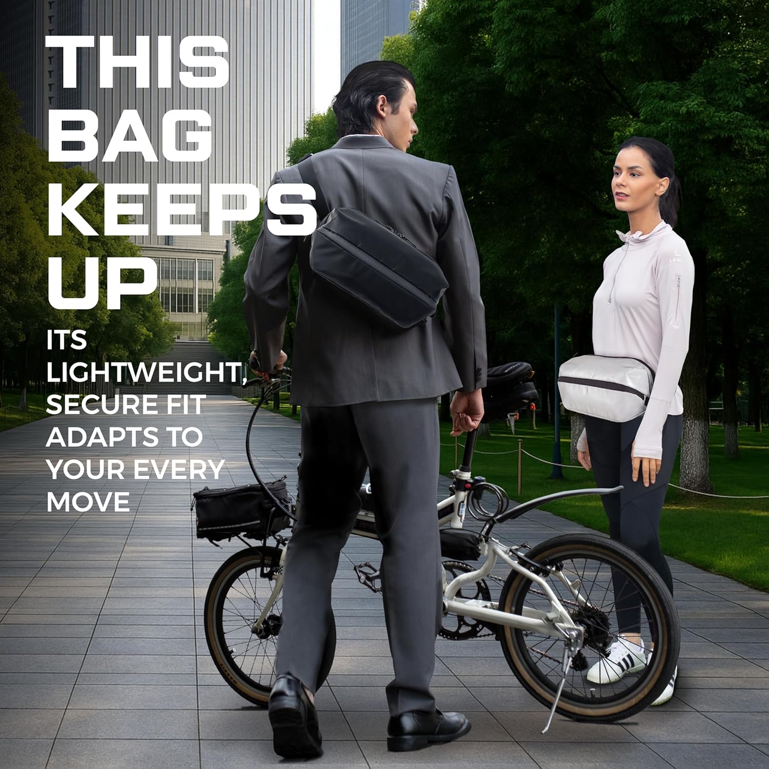 Large Performance Crossbody Sling Belt Bag Fanny Pack Tech Pouch, Includes Umbrella Inside, For Men & Women