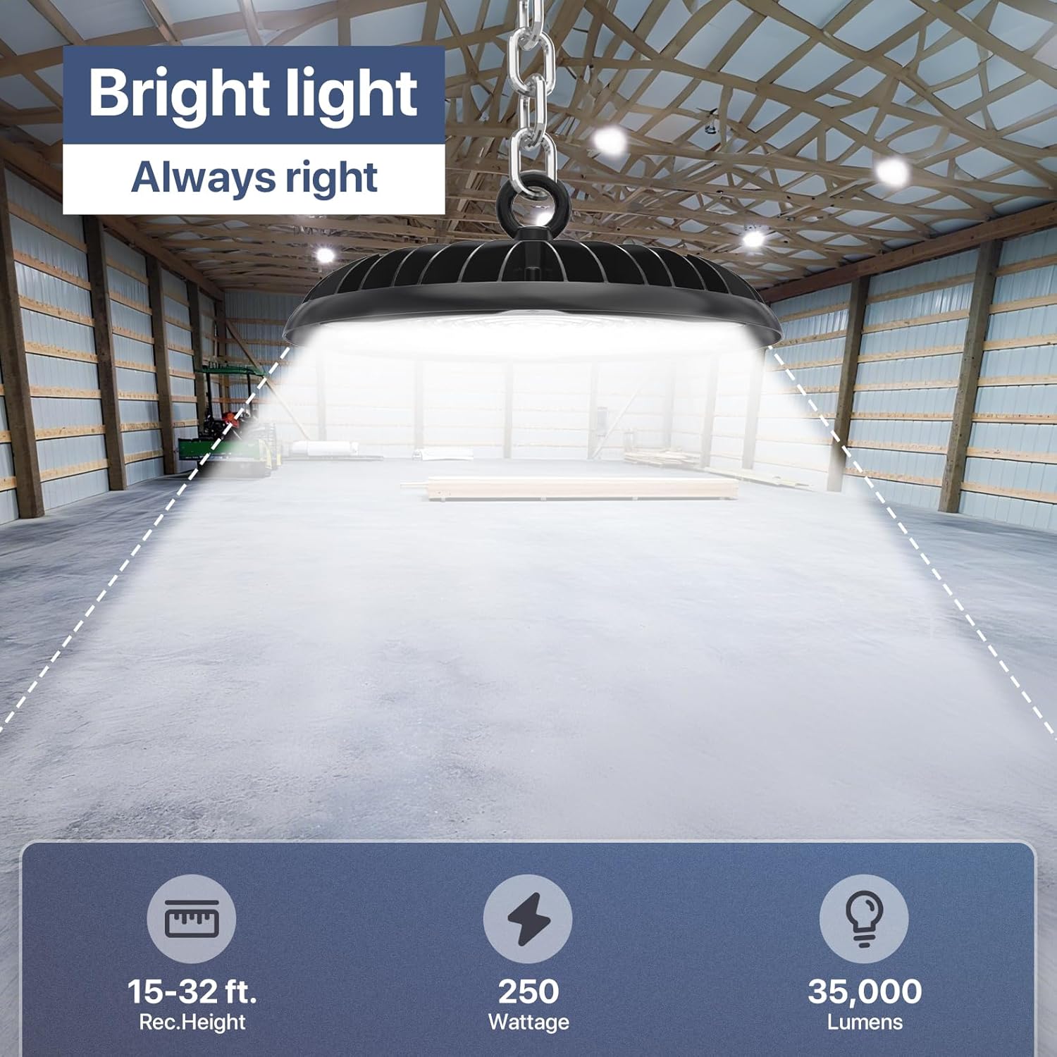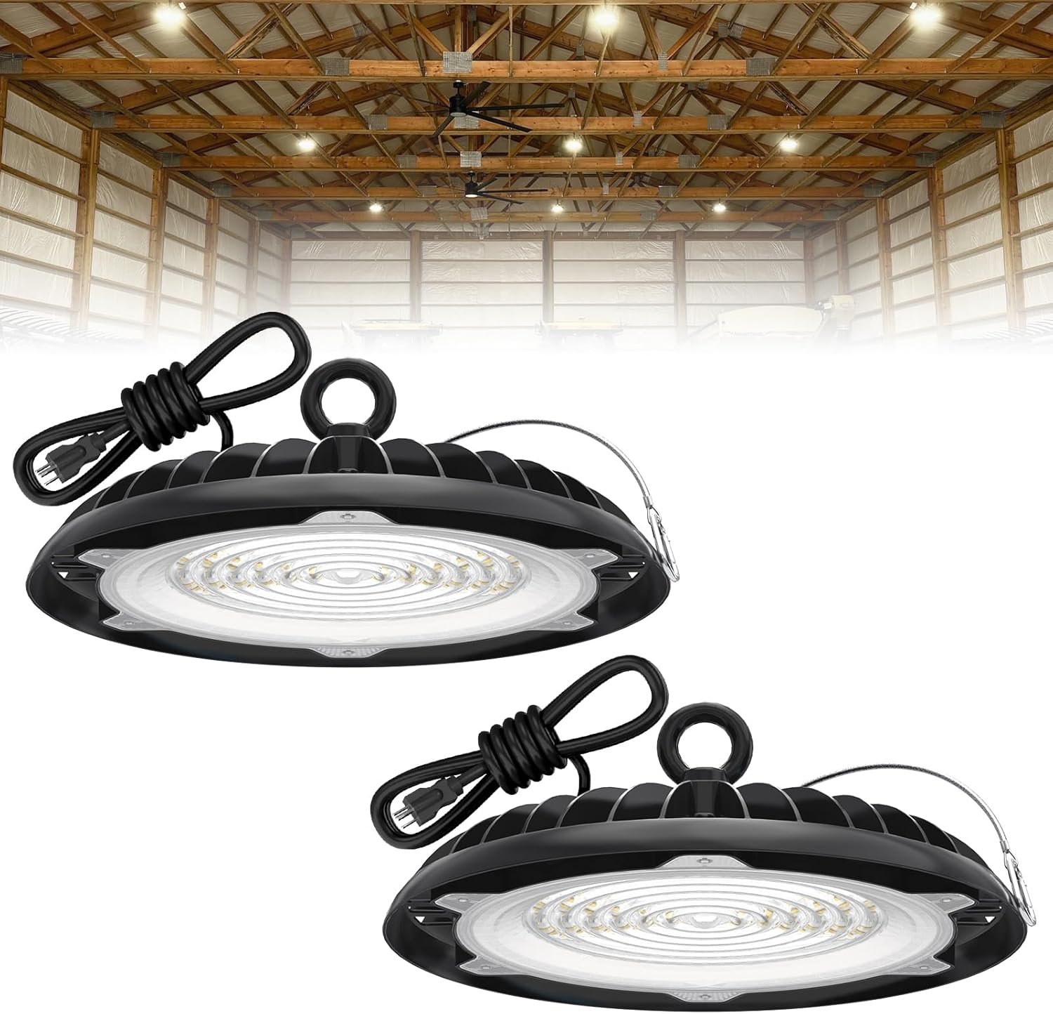 2-Pack 250W UFO LED Light with Plug & Play, 5000K IP65 Waterproof Shatterproof Lighting Fixture