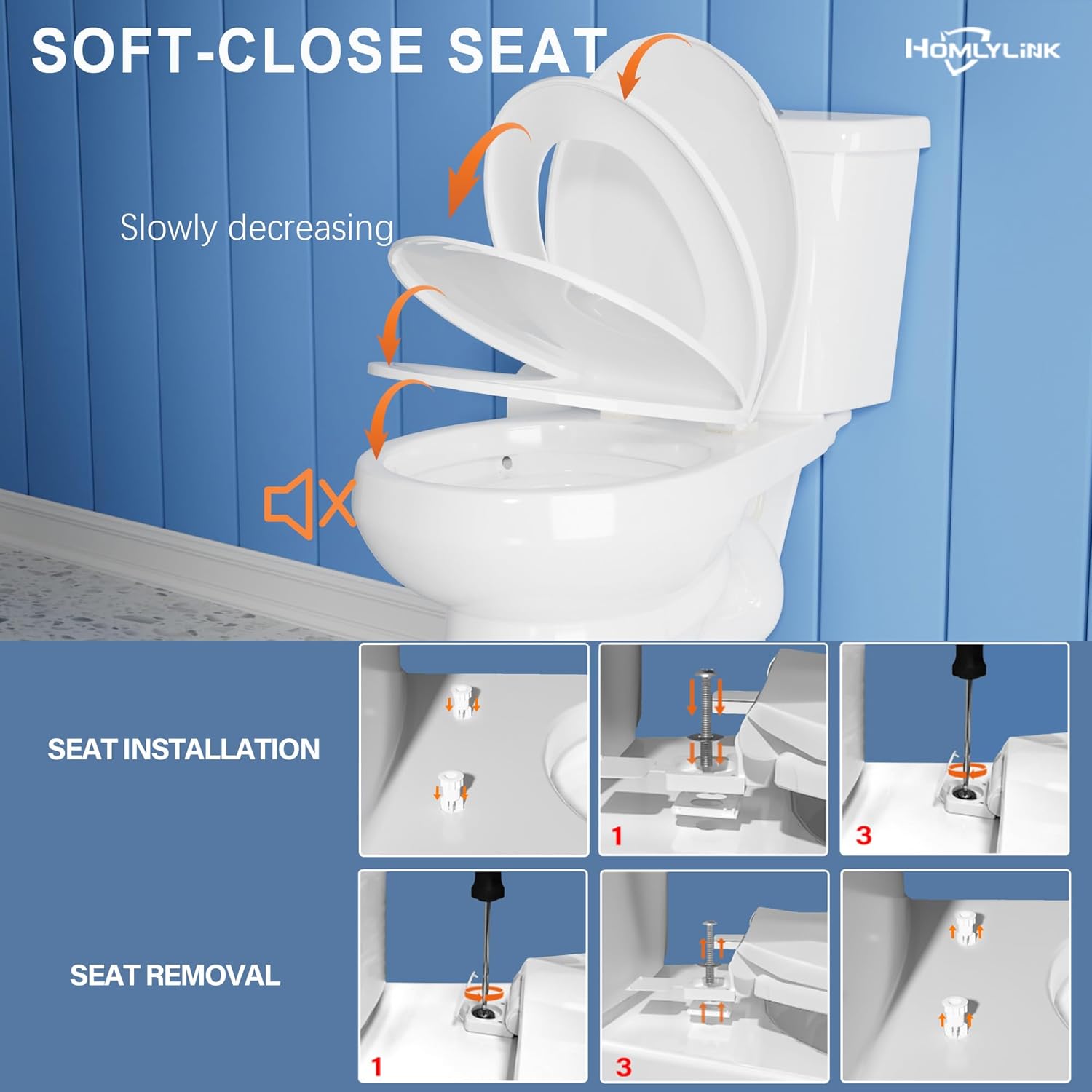 Removable Soft-close Seat 16.5 InchHOMLYLINK tall toilets come with premium quality soft-close seat.The Soft-close seat toilet for bathrooms can prevent middle-of-the-night disturbances caused by loud toilet seat slamming. This high toilet contributes to a more peaceful and uninterrupted sleep for everyone.The detachable function makes the toilet seat easy to clean.