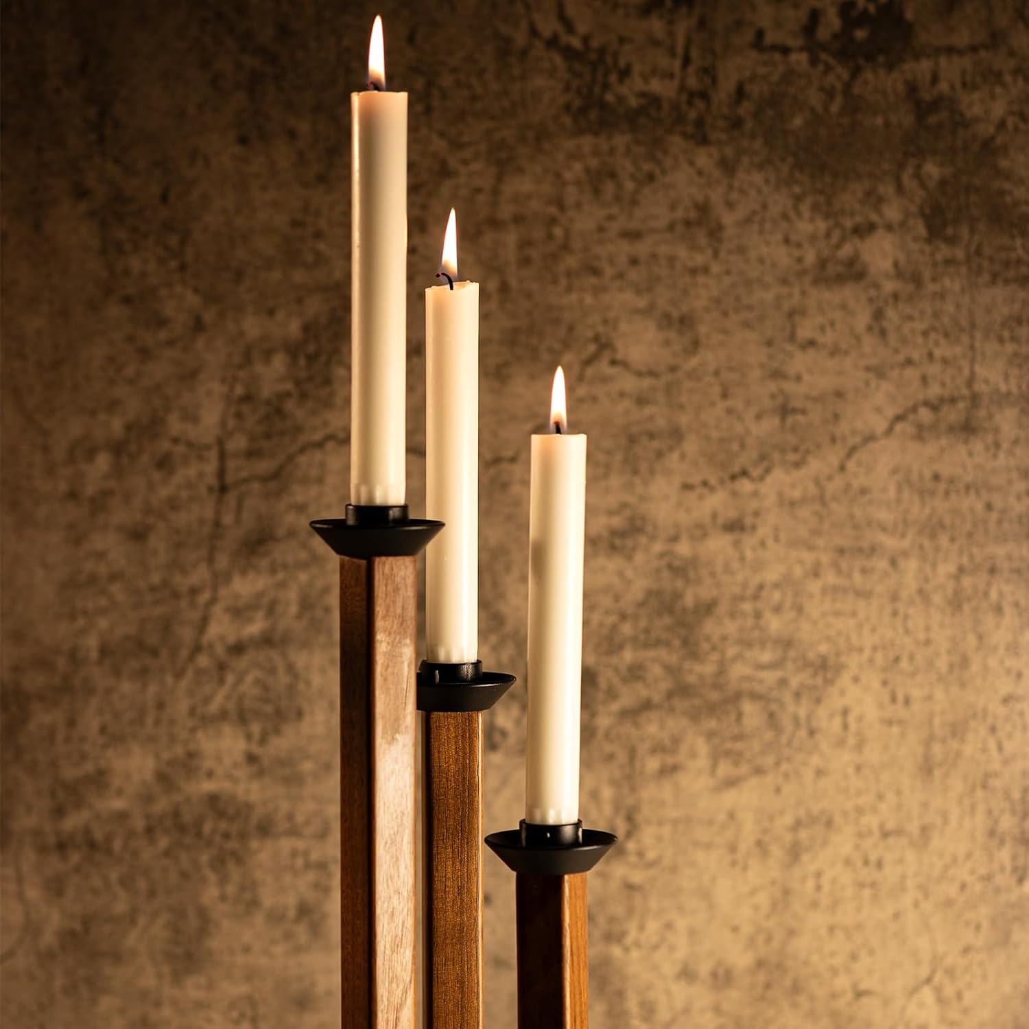Candle Holder Stand, Handcrafted Walnut Wood with Leather 3-in-1 Tiered Set