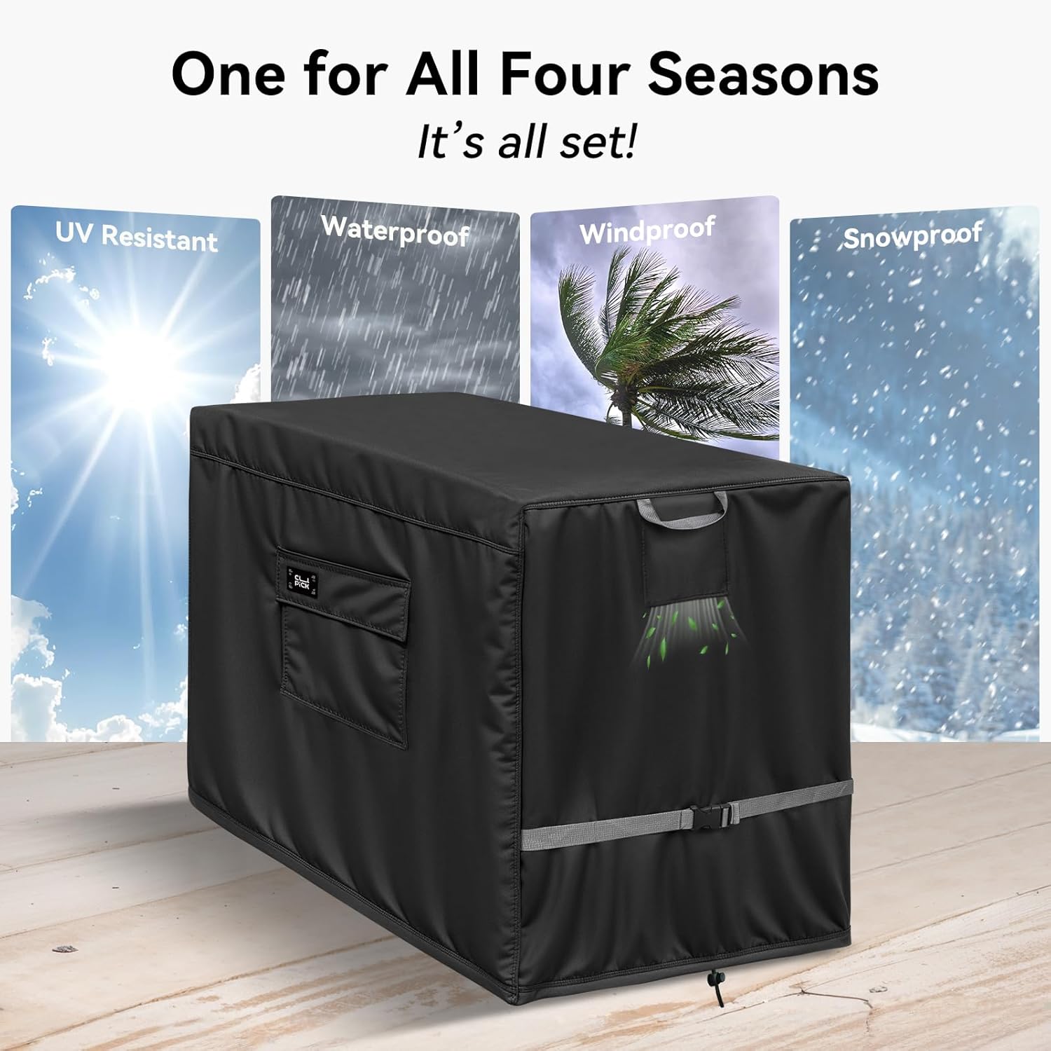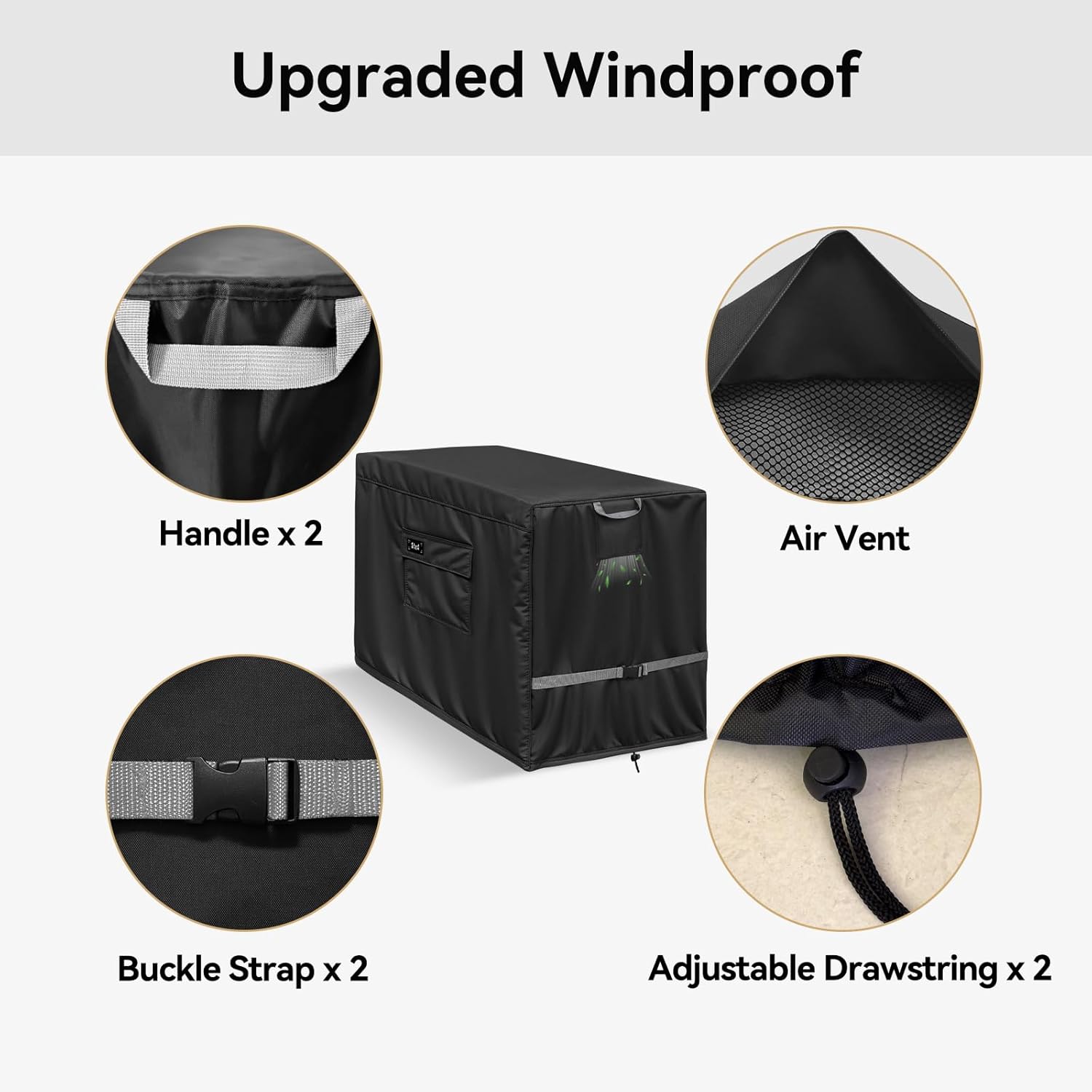 Wind & Moisture Proof: The adjustable drawstring and the buckle strap can be easily tightened to create a customized fit. The air vent used to reduce the temperature of the engine driven welder, keep the air inside circulating, dry and clean, which greatly reduces the risk of rust and mold on the engine driven welder. The handle design on both sides makes it easy to remove the cover