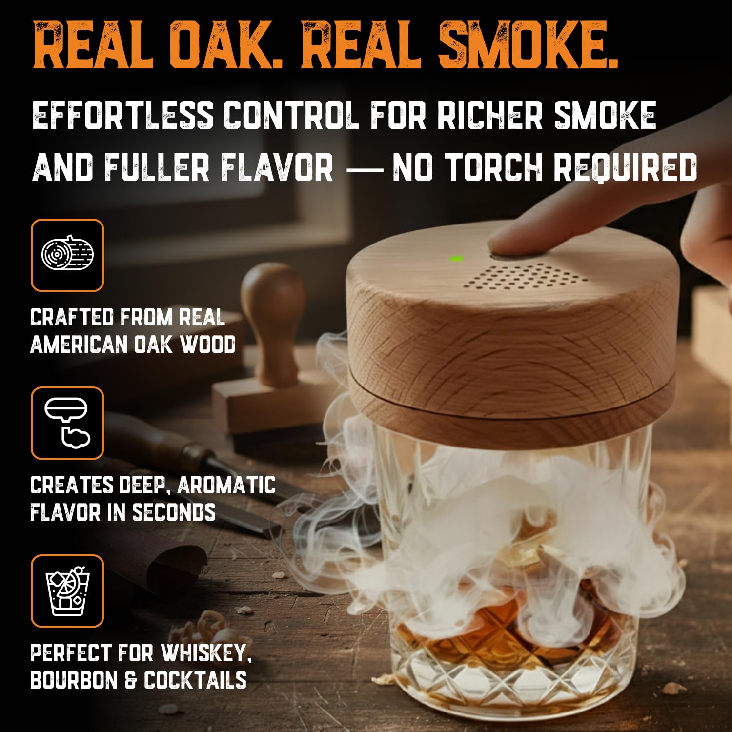 BAR-QUALITY SMOKED COCKTAILS AT HOME – Effortlessly add a rich, smoky aroma to Old Fashioneds, Manhattans, bourbon, and whiskey cocktails. Perfect for home bartenders who want professional results with minimal effort.