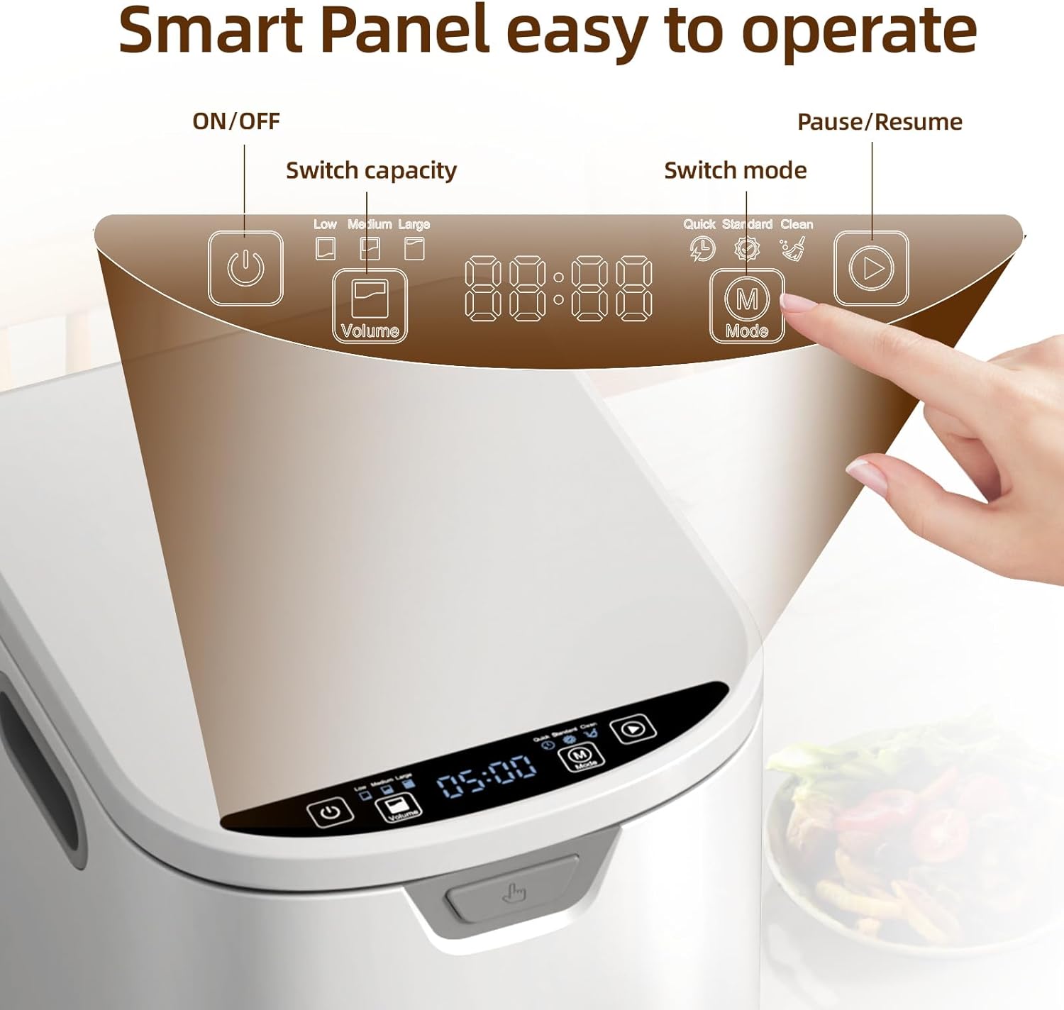 4L Large Capacity, Compact Design: Perfect for handling a household’s daily food waste. Its sleek and space-saving form fits neatly on any kitchen countertop, ideal for modern homes.
