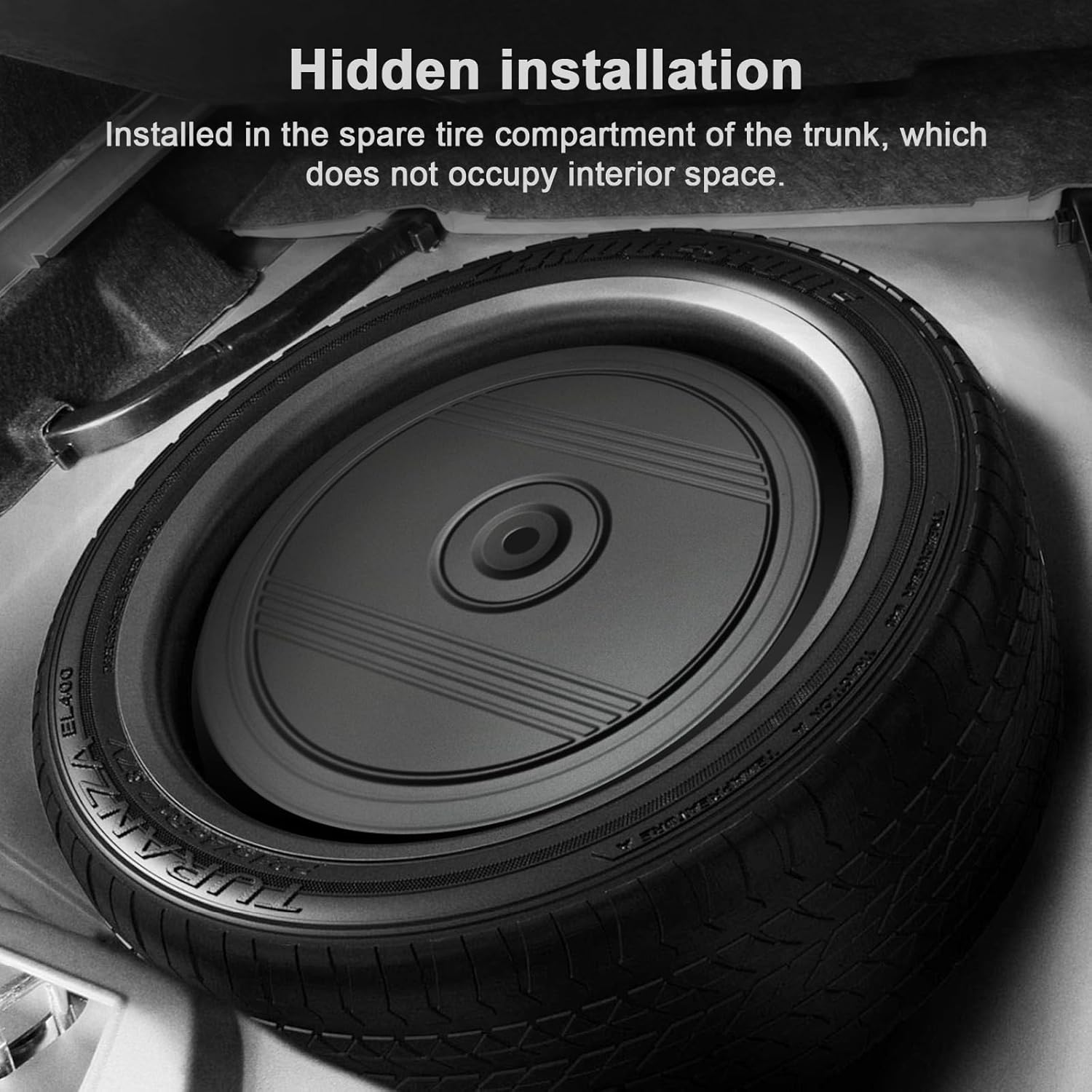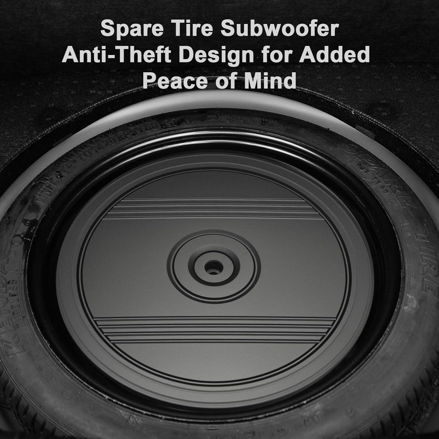 12' Car Subwoofer, Deep Bass, Anti-Theft Spare Tire Design, Plug & Play, OEM-Style Spare Tire Mount, High Output