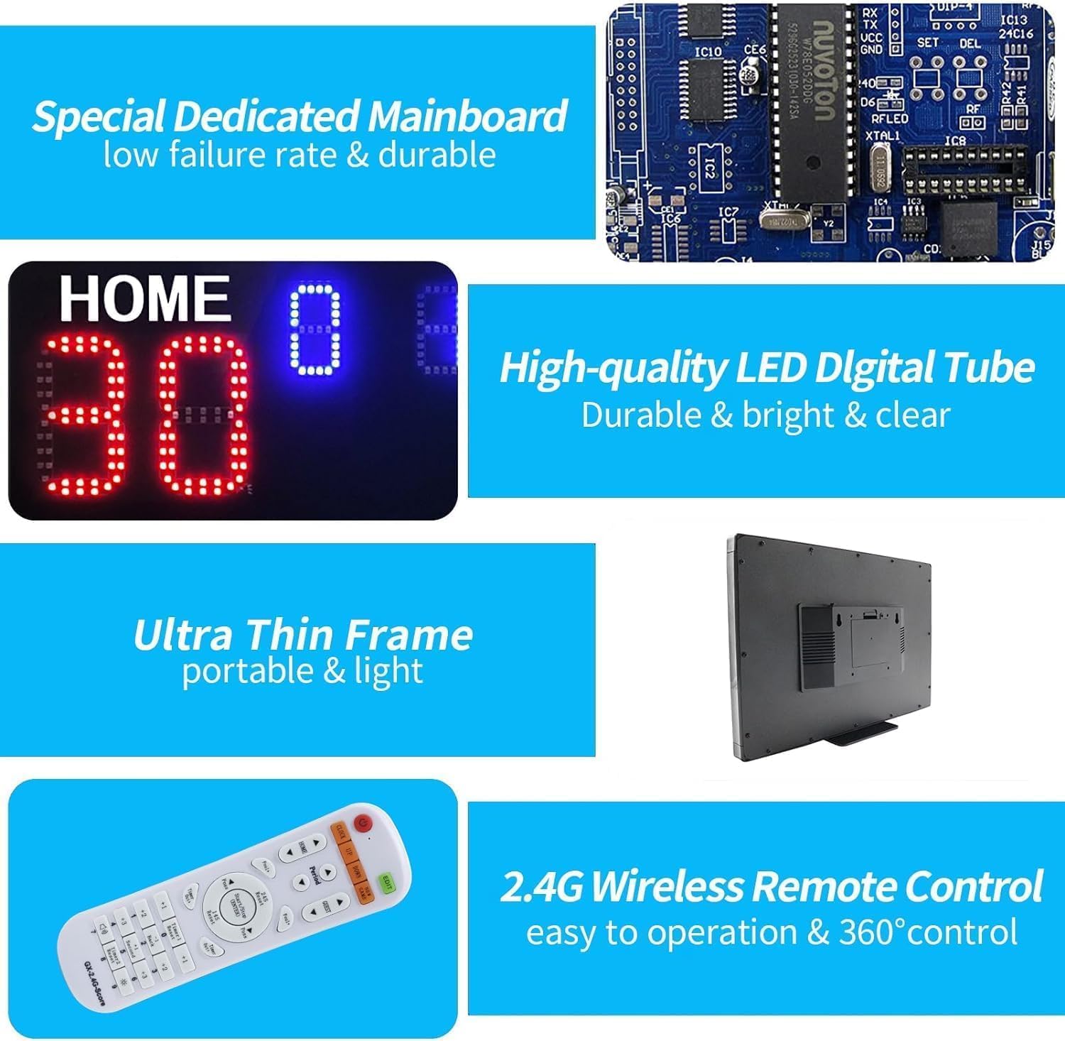 Digital Scoreboard for MultisportsIn normal mode, score changes from 1 to 99 and match score from 0-9. In tennis mode, the score changes are 15,30,40 and match score auto+1. All functions can be operated easily with remote, 100ft super long control range, can be kept across the court, perfectly meeting the needs of different games.