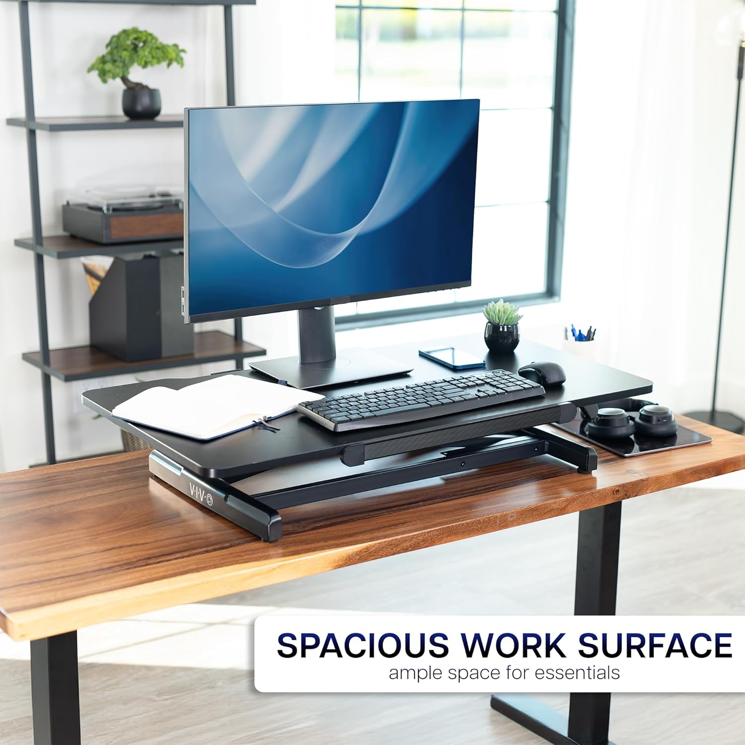 36 inch Height Adjustable Tilting Stand Up Desk Converter, Quick Sit to Stand Single Top Keyboard Riser, Black