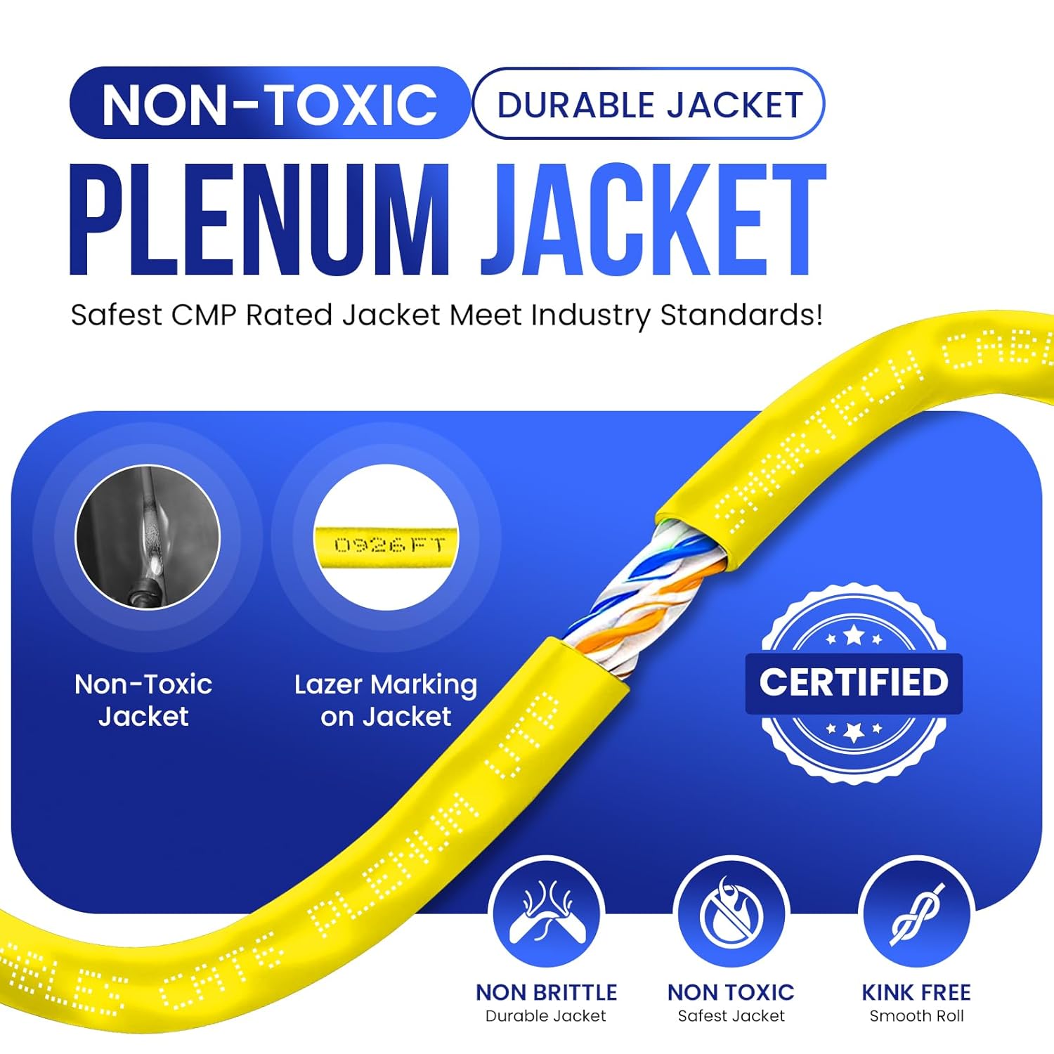 - & : Experience blazing-fast 10 Gbps data transfer speeds and 550 MHz bandwidth with the premium Cat6 plenum cable 1000ft. This high-speed Cat 6 Ethernet cable 1000ft delivers outstanding performance for 4K/8K streaming, competitive online gaming, and enterprise-level data transfers. Our Cat6 plenum 1000ft Ethernet cable is engineered for future-proof networking, supporting 10 Gb Ethernet standards.