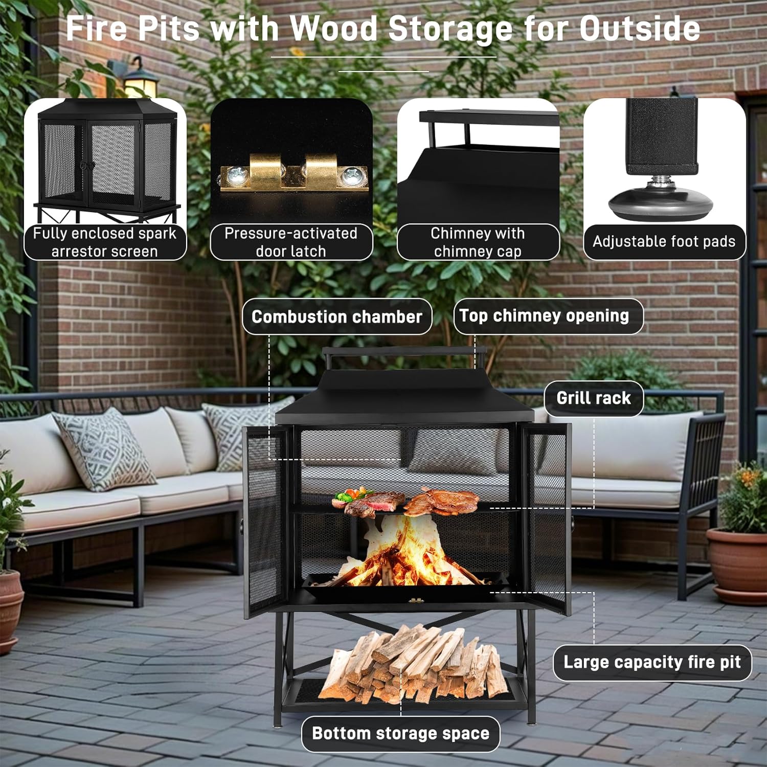 Practical Storage & Easy CleanupOutdoor fire pit includes a built-in wood storage compartment to keep firewood and tools organized. Removable ash pan makes cleanup quick and simple