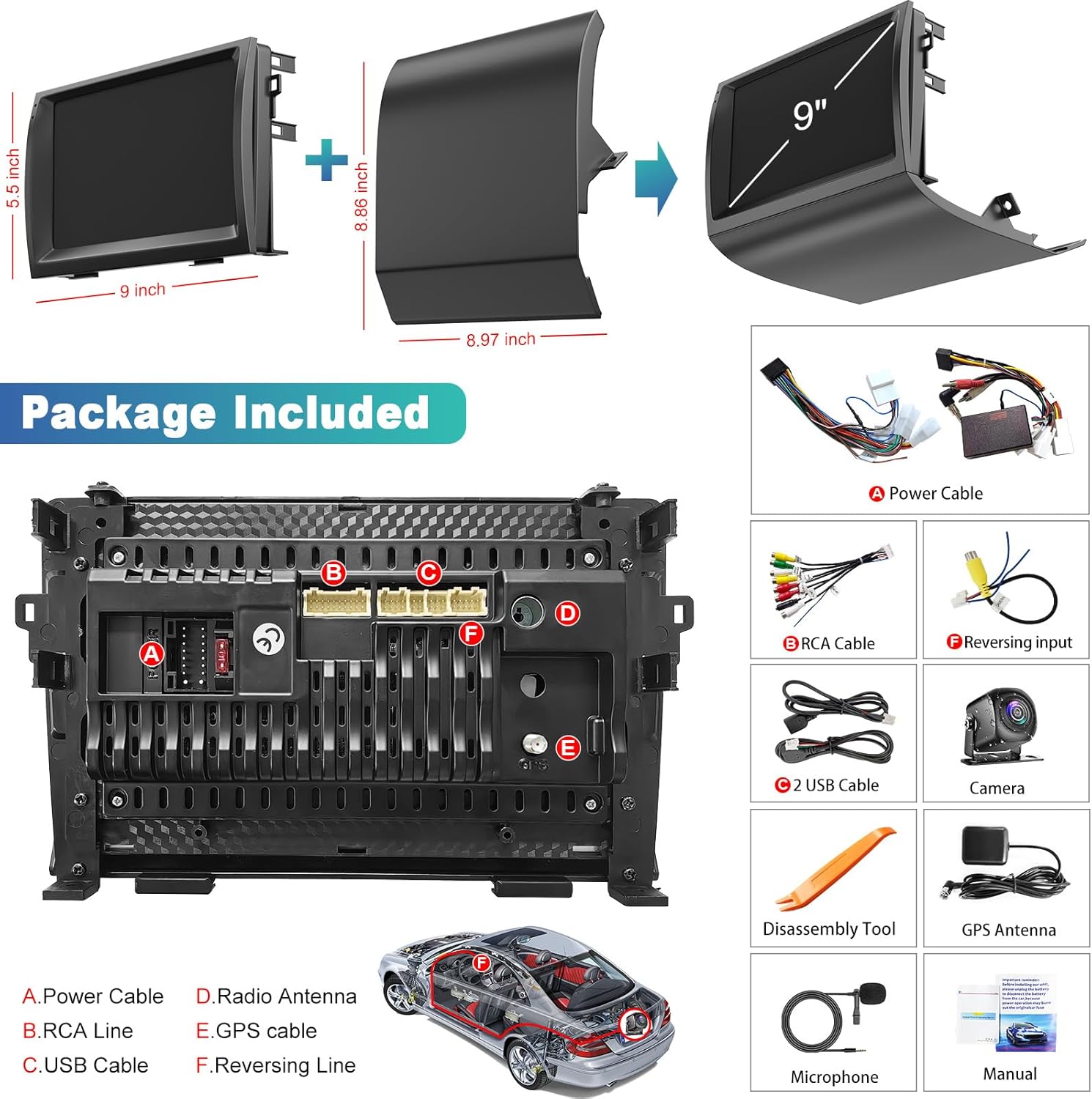 Android 13 Car Radio Stereo for Toyota Prius 2003-2009, 9 inch Touch Screen, Wireless Carplay/Android, Backup Cam