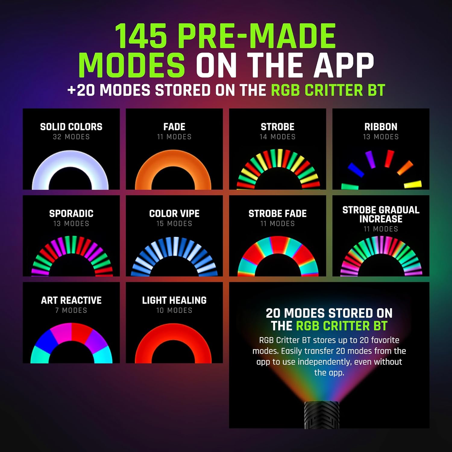 Light Painting Tools Kit, RGB Critter BT Programmable Flashlight, App-Controlled, 16M Colors, USB-C Rechargeable