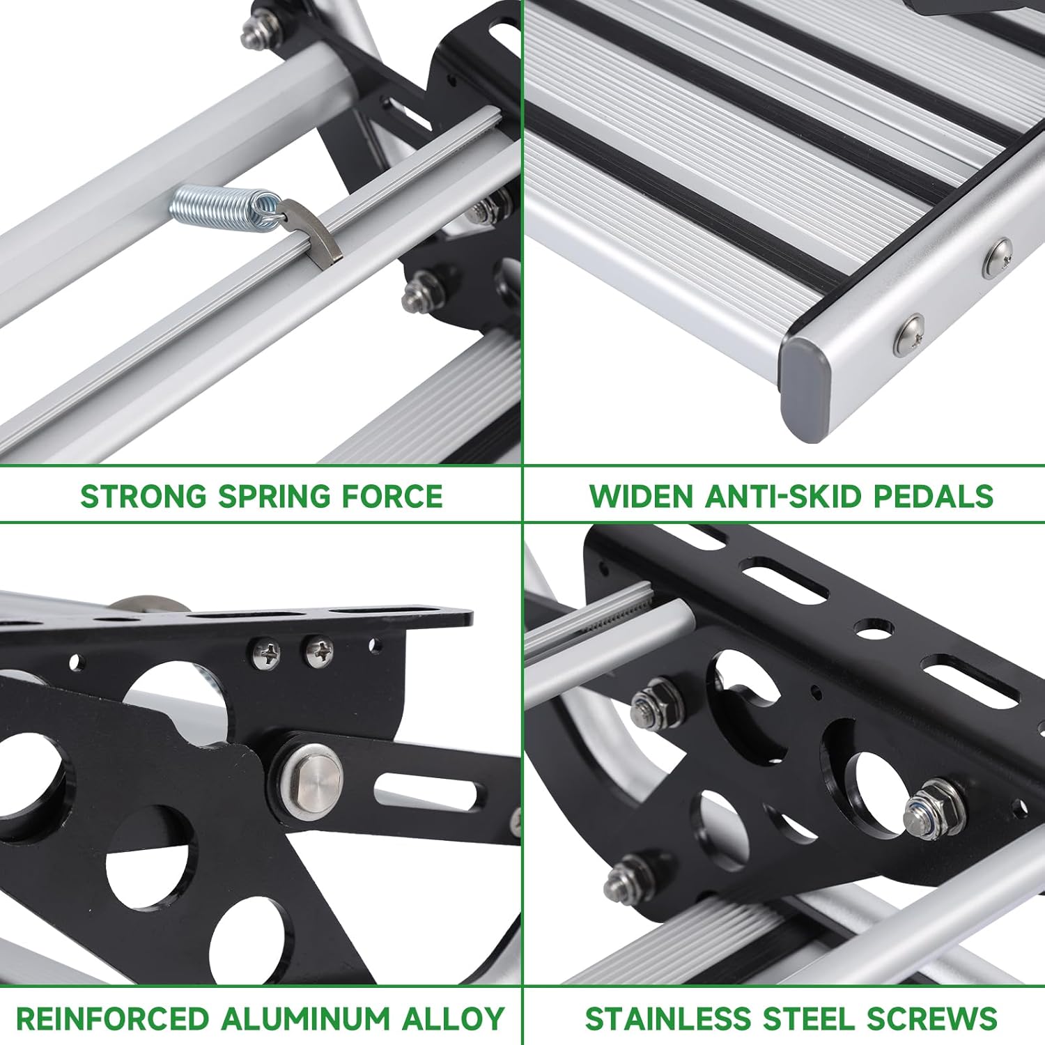 EASY STORAGE AND OPERATION: The pull-out manual RV steps feature extra wide aluminum treads and adjustable legs to open and close the steps with a simple push-out and pull-in operation. At the beginning of your trip, you can simply fold the steps without the need for additional storage space. A great convenience for your RV life.