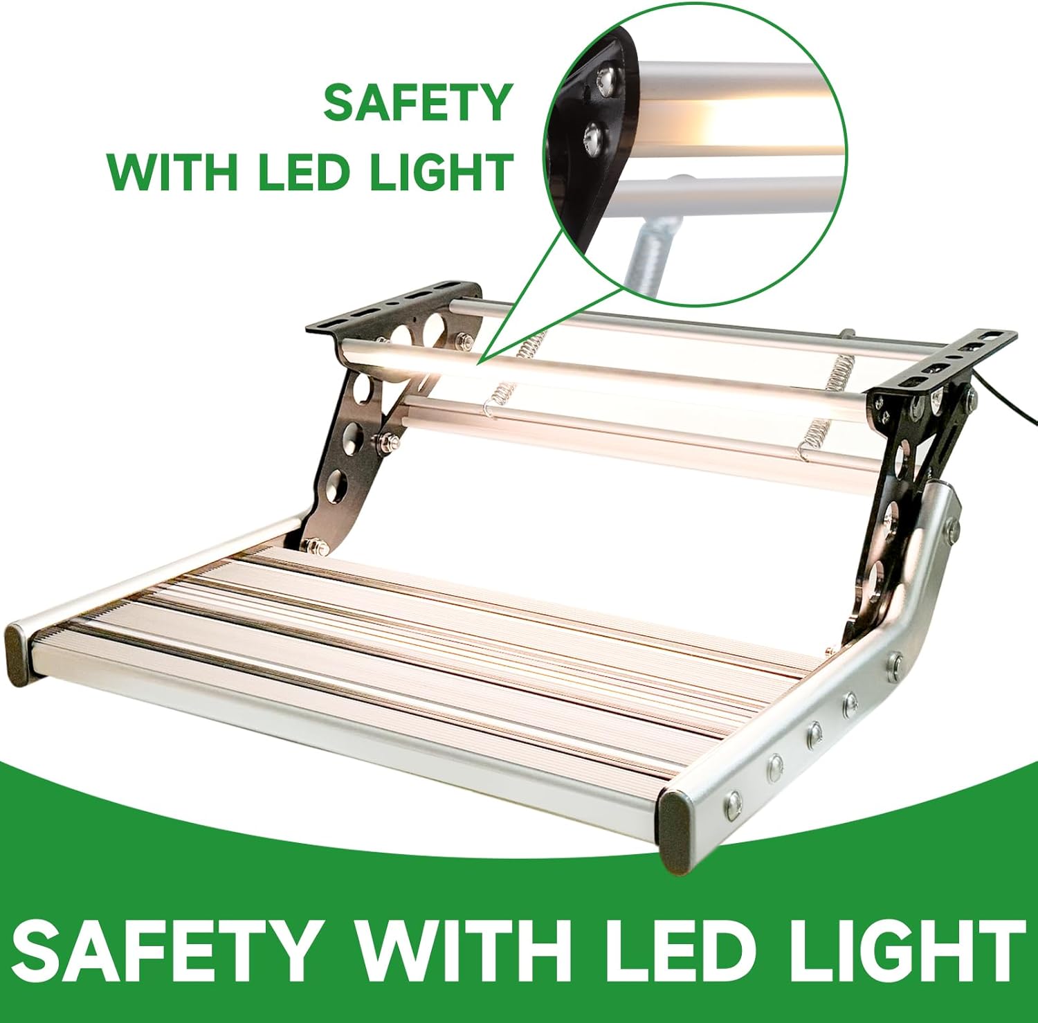 SAFETY NON-SLIP STEPS: The steps have diamond non-slip strips for added friction and are illuminated by a light strip that allows you and your family to enter and exit the RV safely and easily without fear of tripping or slipping accidents.