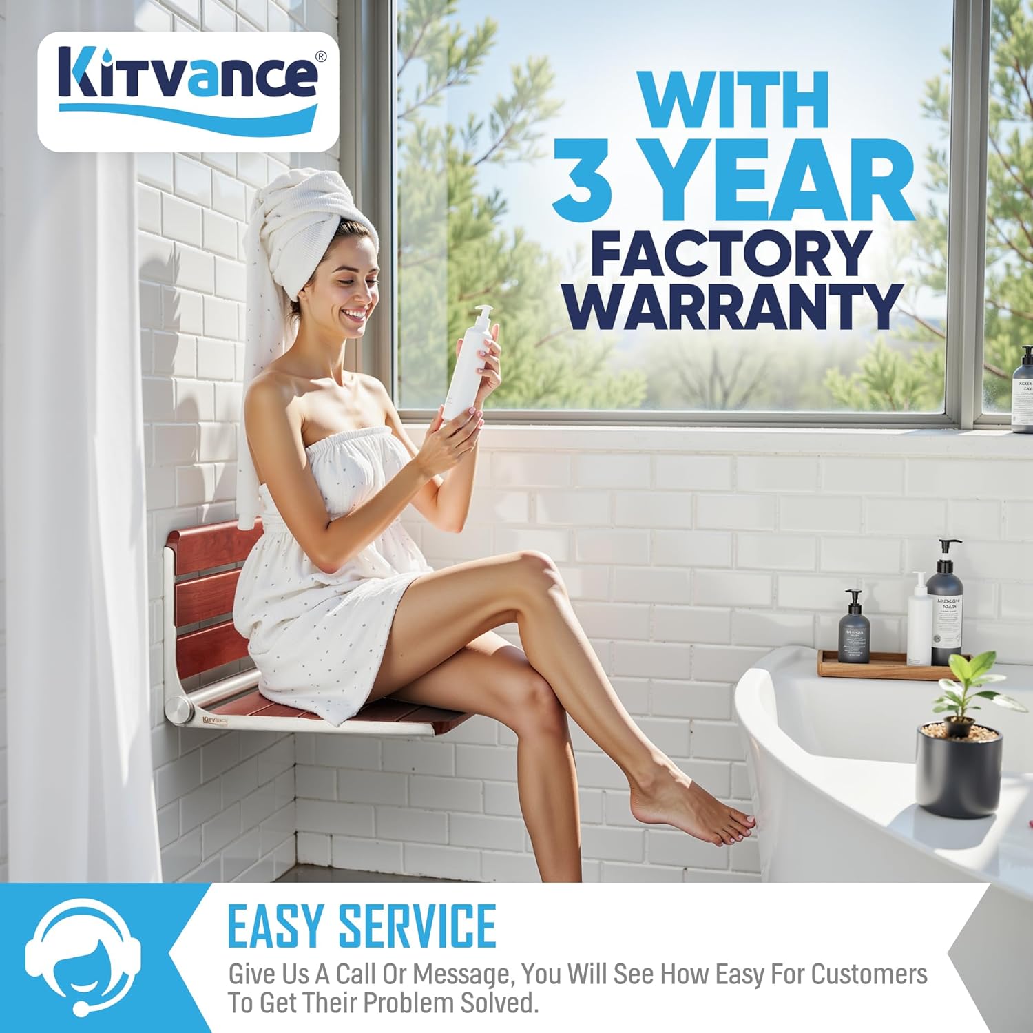 Multi-Use Fold Down Teak Shower Chair & 3-Year SupportMore than a shower seat for elderly, this versatile teak folding bench fits perfectly in bathrooms, entryways, mudrooms, locker rooms, and saunas. Backed by 3-Year Factory Technical Support for lasting peace of mind.