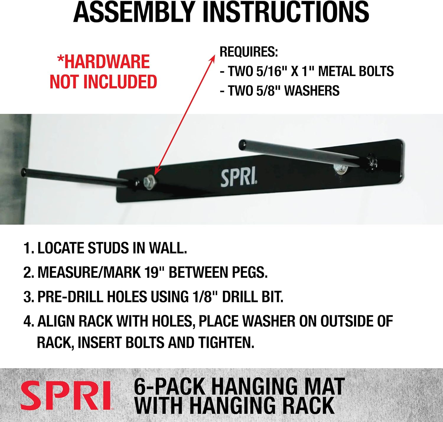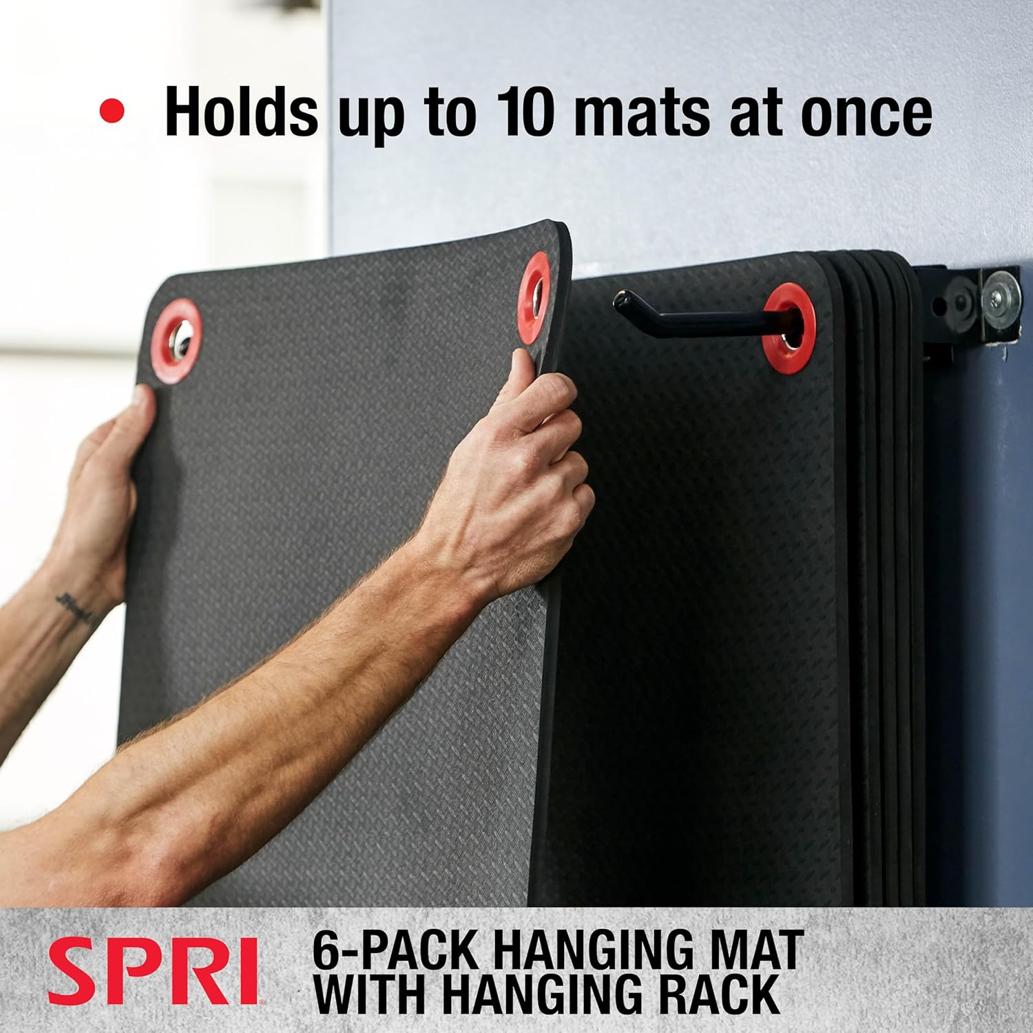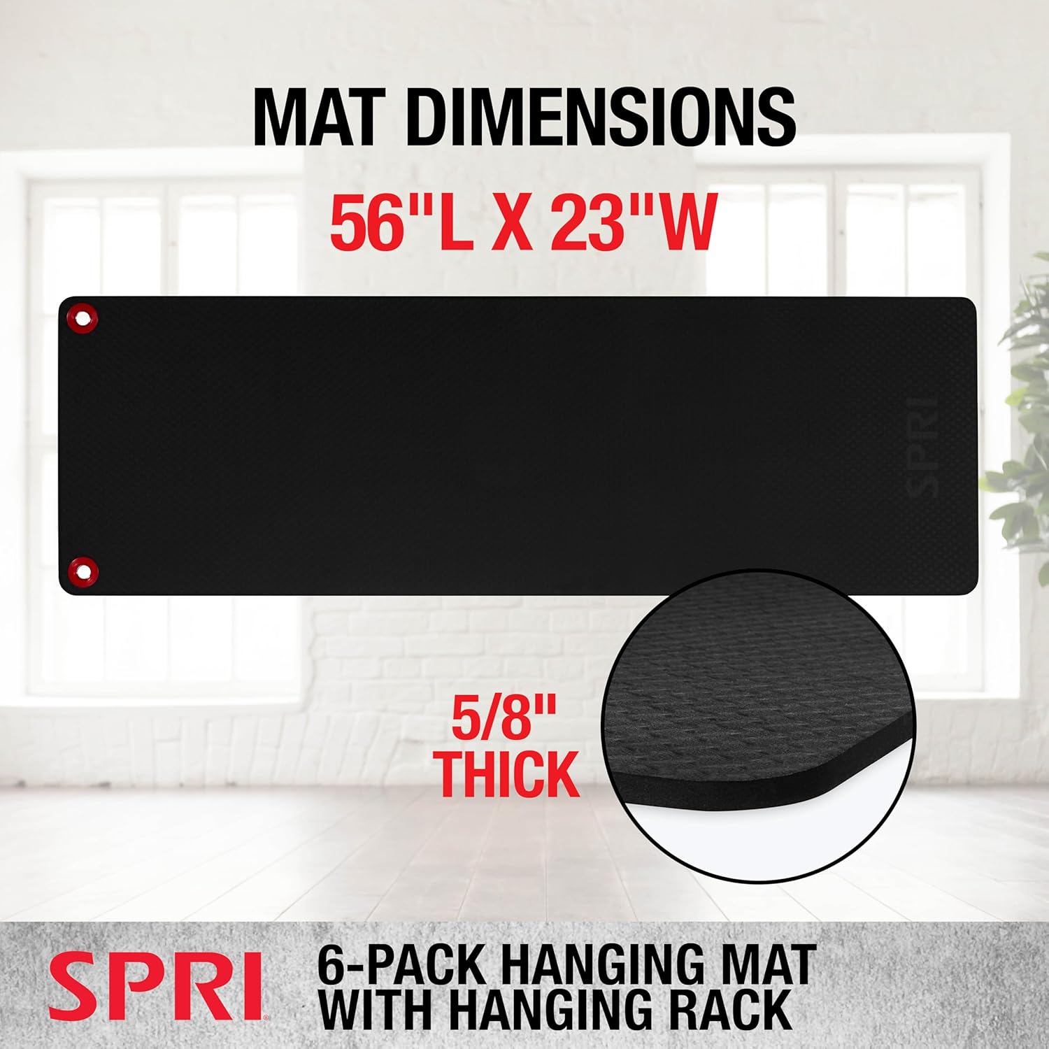 Hanging Bulk Fitness Mats + Rack, 15mm, 56” x 23' Black, 6 Pack, Closed-Cell Foam, Reinforced Grommets
