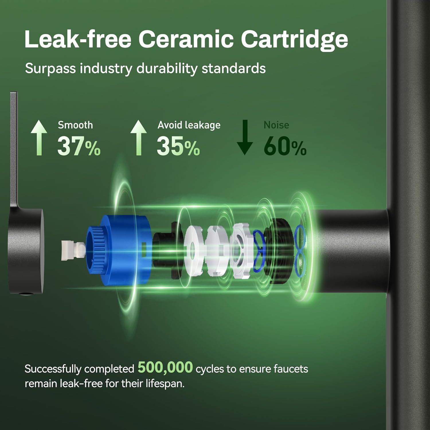 Premium Ceramic Cartridge: The rv faucets kitchen valve core passed over 500,000-cycle open/close tests for Leak-Free performance, ensuring a smooth, precise flow and leak-free performance for years