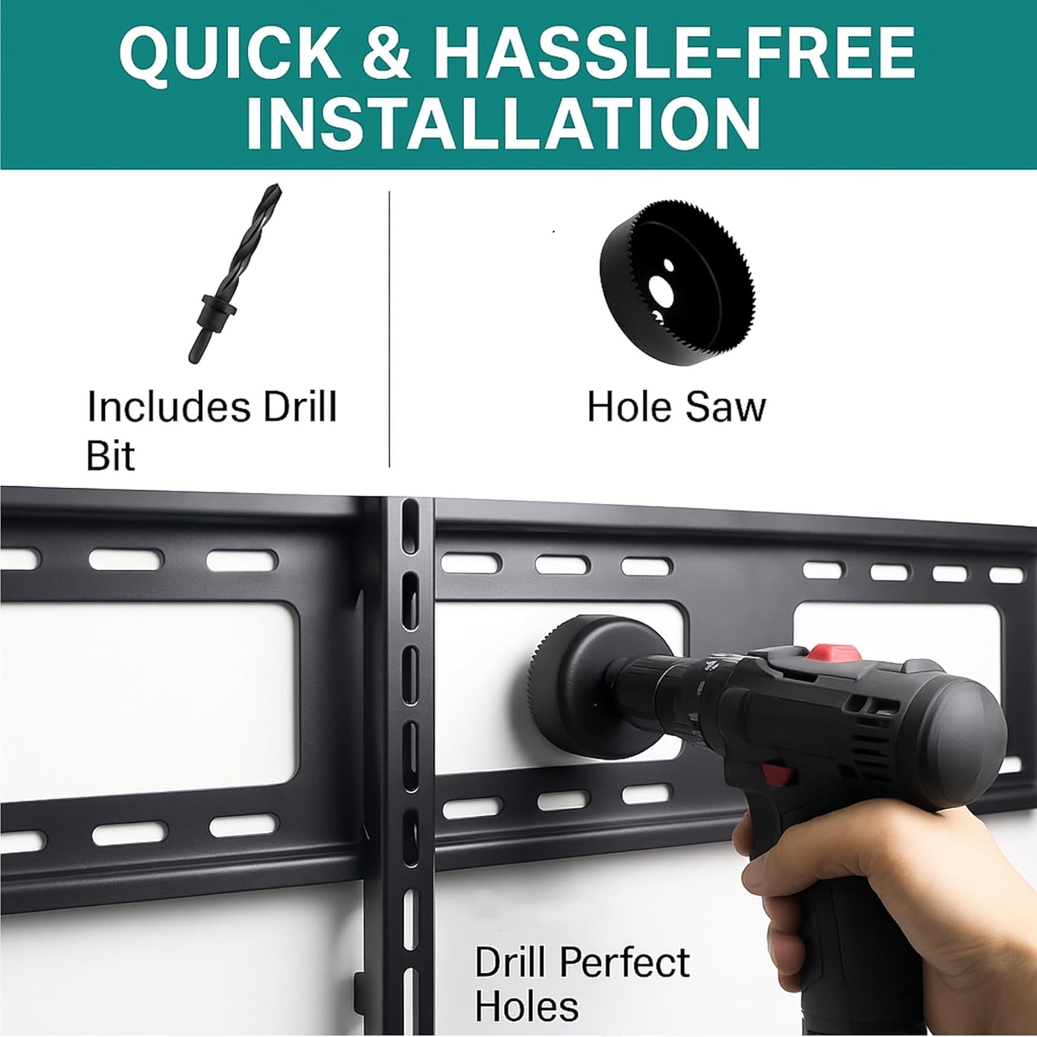 Comes with Drill Attachment to ensure a perfect fit for the grommet. The locking bracket wings grip the back of your wall securely, keeping everything in place. Note: You`ll need at least 2.5 inches of space behind your drywall to install this kit.