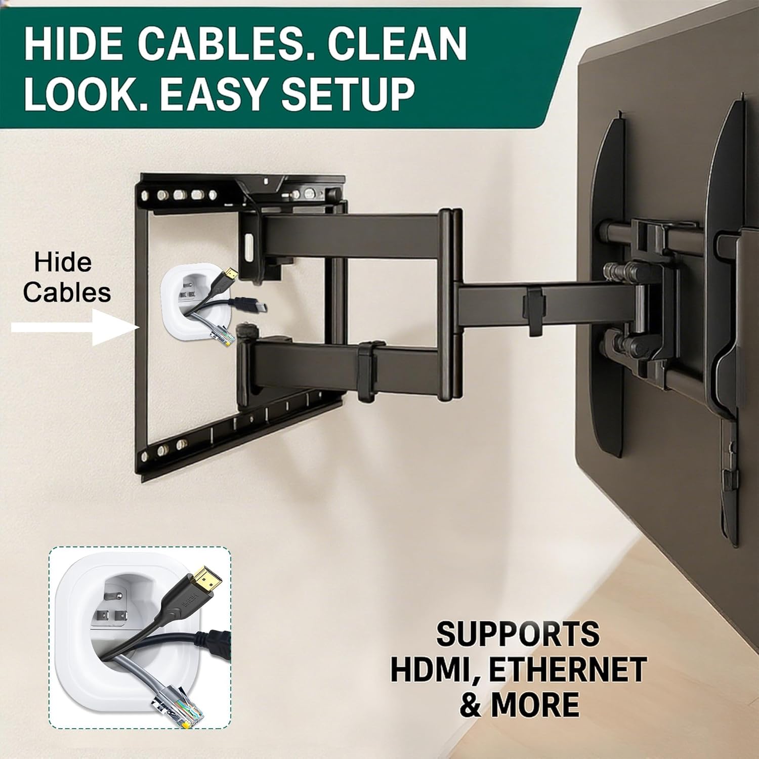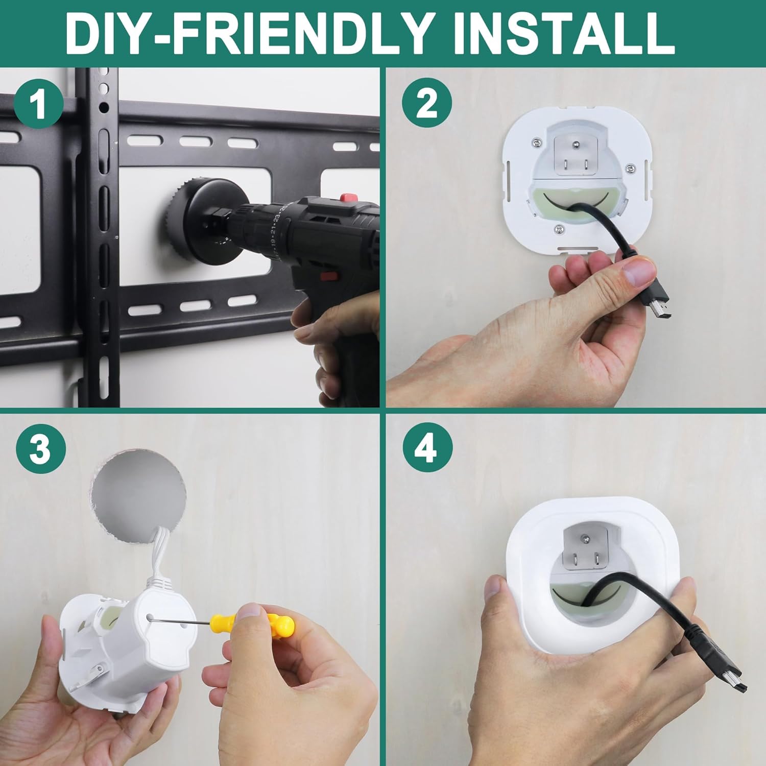 Easy Installation – This DIY in-wall cable management kit makes setup quick and hassle-free, taking less than 30 minutes. With its pre-wired design, there`s no need for an electrician or complex wiring. Everything you need for installation is included in the kit.