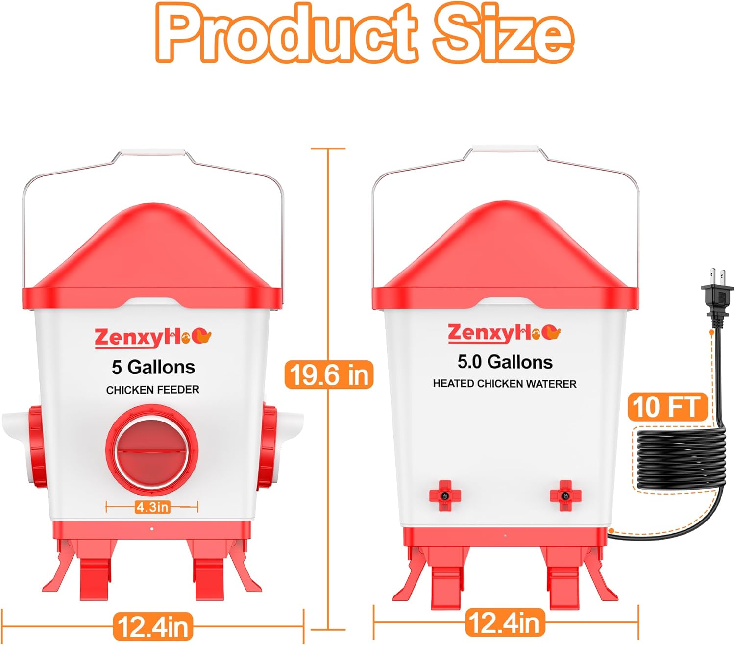 Keep water fresh design: Providing chicken with fresh water. ZenxyHoC Heated Chicken Waterer Bucket automatically turns on when the ambient temperature falls below 35°F (2°C) and the power will automatically disconnect, when environment temperature is approaching 77°F (25°C)