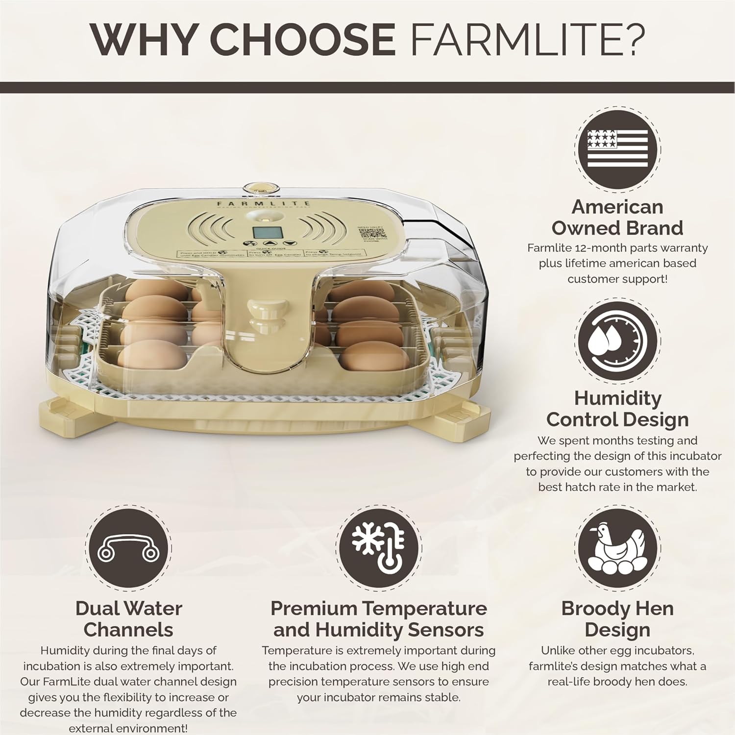 QUALITY DESIGN: The FarmLite egg incubator with automatic egg turning and humidity control is the ultimate egg incubation system. We spent months perfecting our system to provide our customers with the best hatch rates possible.