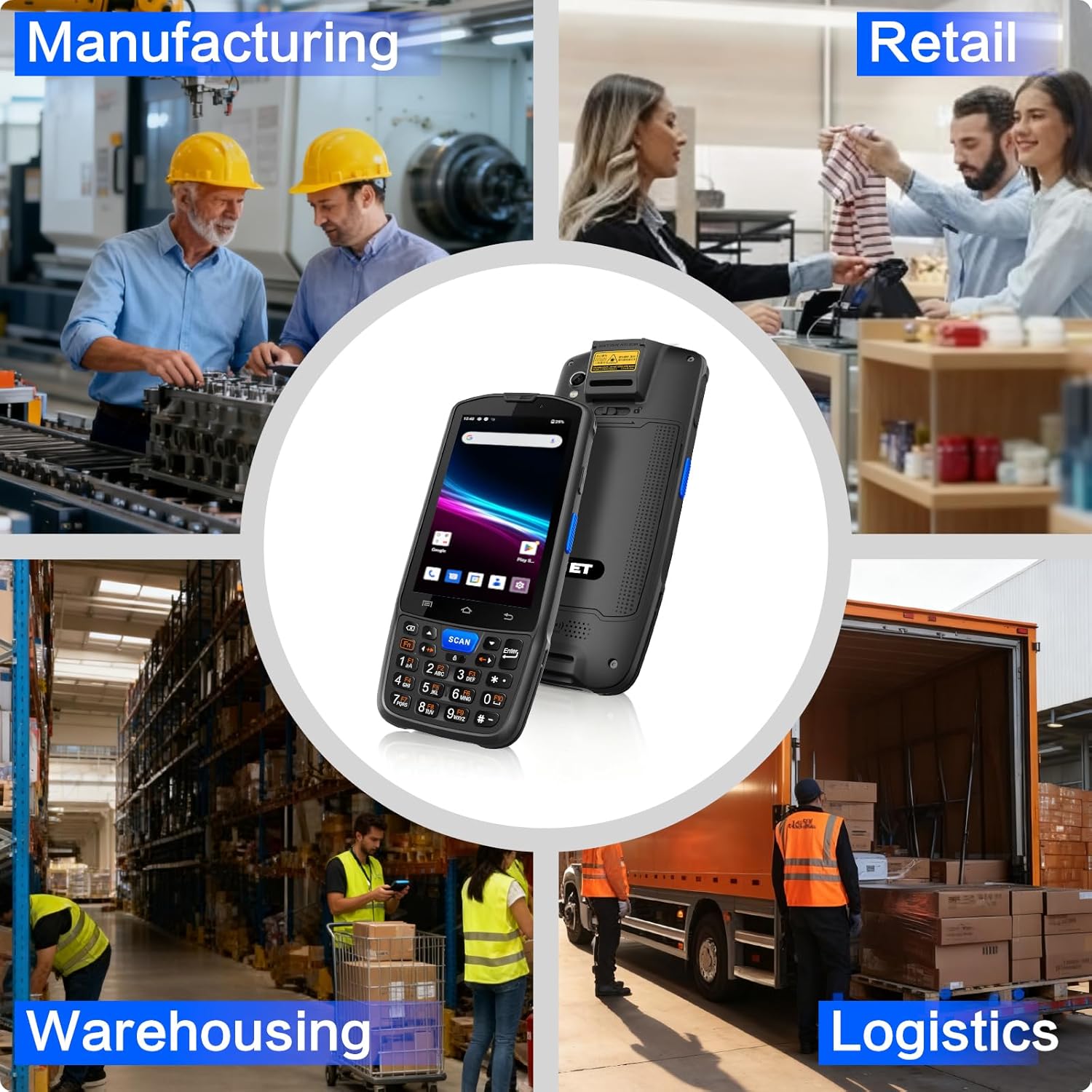 Advanced Android 14 with GMS Certification F7 handheld computer runs the latest Android 14 OS with full GMS certification, powered by a quad-core processor with 4GB RAM and 64GB storage.Supporting dual-band Wi-Fi and Bluetooth 5.0, it delivers 25% faster app loading and seamless compatibility with enterprise applications—ideal for retail, logistics, and warehouse management.