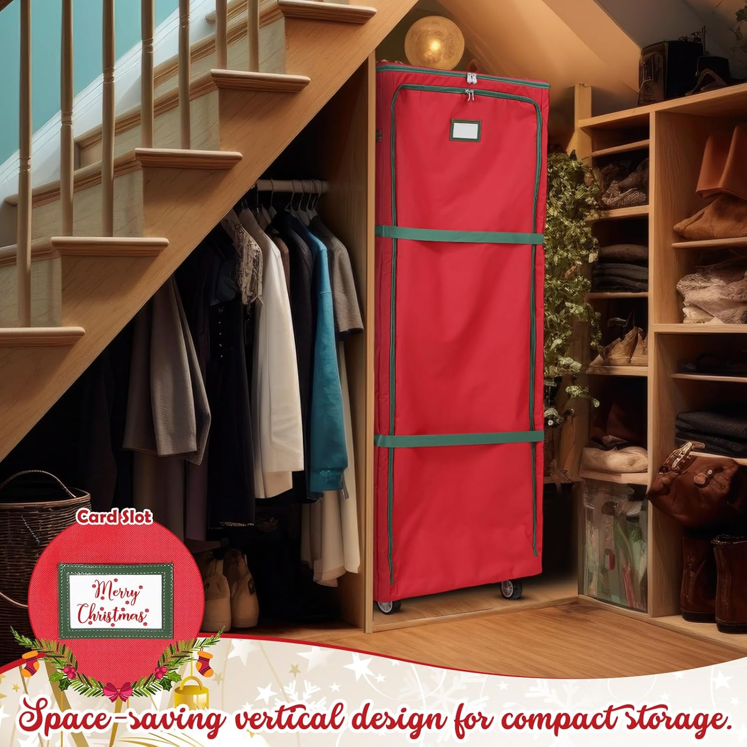 Rolling Christmas Tree Bag – Fits 12 ft Artificial Xmas Trees, Large Storage Box with Wheels & Compression Straps