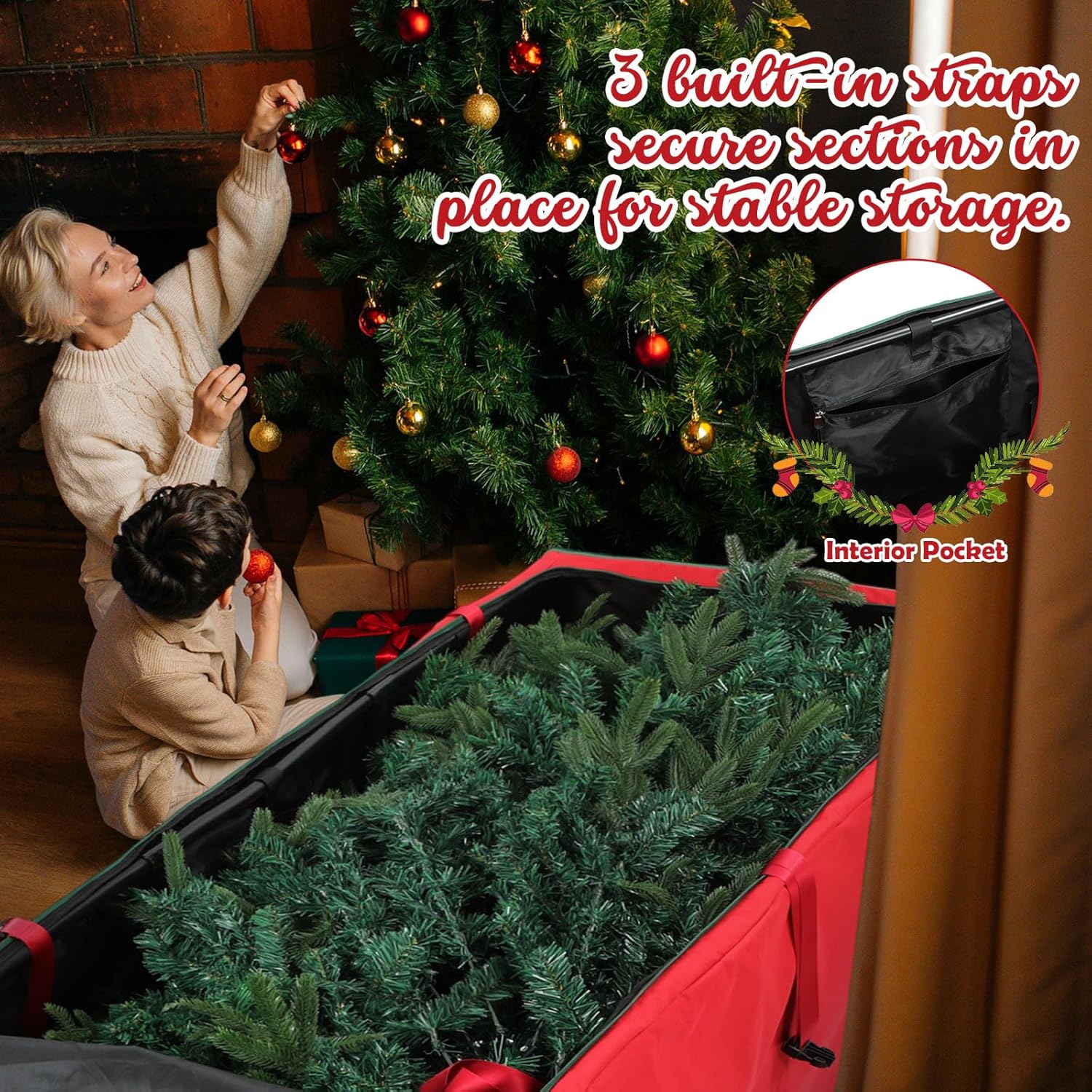 Durable & Organized: Crafted from rugged 600D Oxford fabric, this Xmas tree storage bag resists tears and abrasions to help protect your tree season after season. An interior zippered pocket keeps small essentials—like spare bulbs or gloves—secure and easy to find for next time