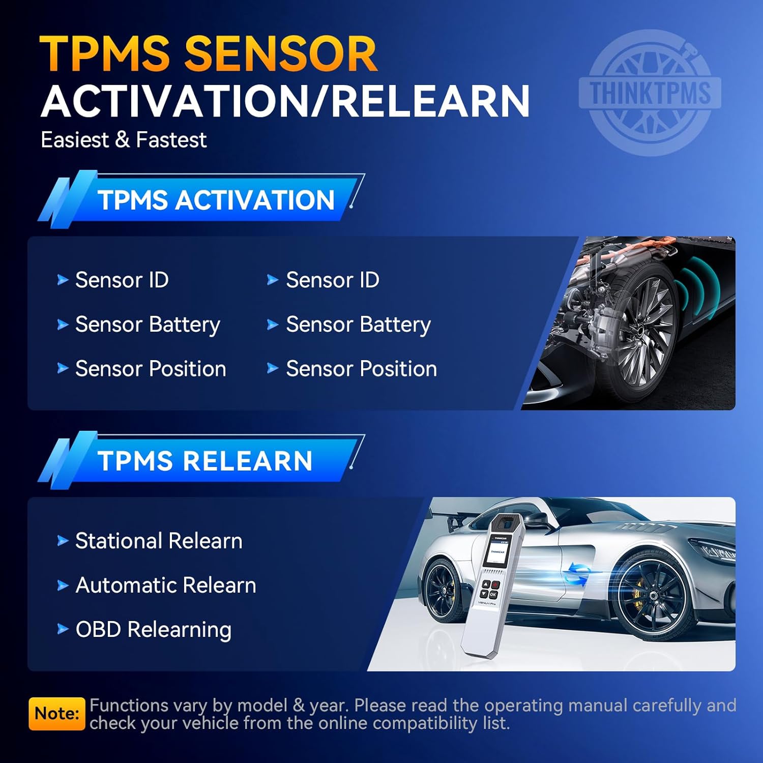 [Unlimited Programming for THINKCAR Sensors] Replace factory sensors with models like VENU 5, 5Pro, S3, and more. THINKCAR sensors offer four programming methods: 1) Copy via OBD; 2) Auto-create; 3) Manual create; 4) Copy via activation. (Note: The VENU I PRO programming tool cannot program sensors from other brands.)