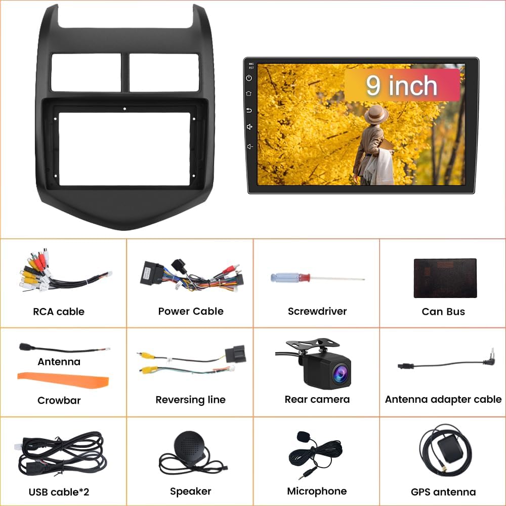Car Radio for Chevy Aveo/Sonic 2011-2015, with 10.1 inch Touch Screen, CarPlay Android, with Rear Camera
