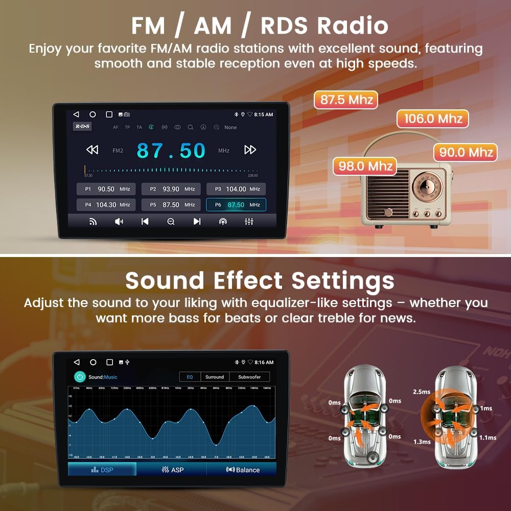 Android Car Radio Experience seamless multitasking with this advanced Android car stereo, featuring 2GB RAM and 64GB storage for lightning-fast app launches and smooth operation. The 10.1 inch touchscreen offers an intuitive, driver-friendly interface, ensuring effortless control while on the road