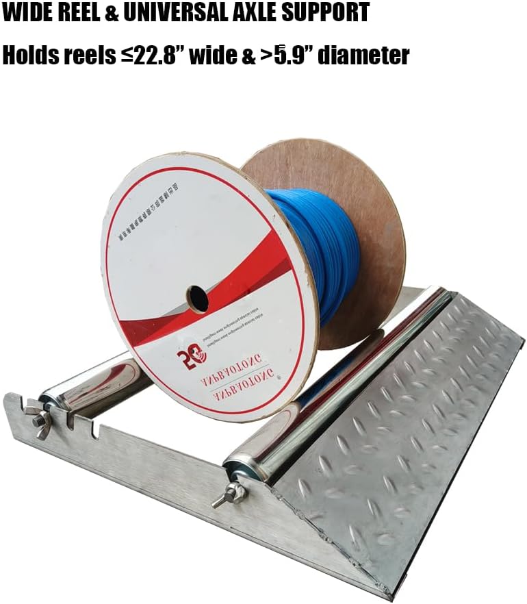 Wide Compatibility:The load capacity is 1200 Lbs.Can hold cable reels with width =22.8 inches and diameter >5.9 inches, and is compatible with nylon, iron, and wooden axles at the same time. No additional accessories are needed to meet diverse needs.