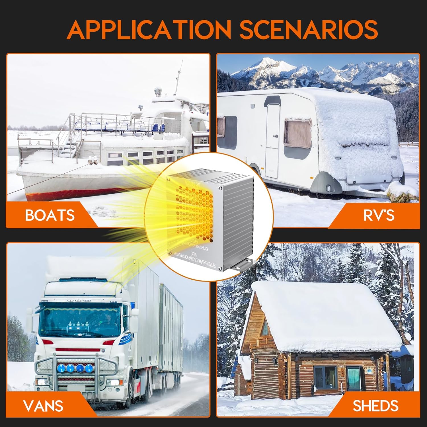 Versatile Applications: Ideal for boat engine compartments, RV engine bays, truck engine compartments, small warehouses, sheds, greenhouses, workshops, lithium battery heaters, service vehicles, and recreational vehicles.