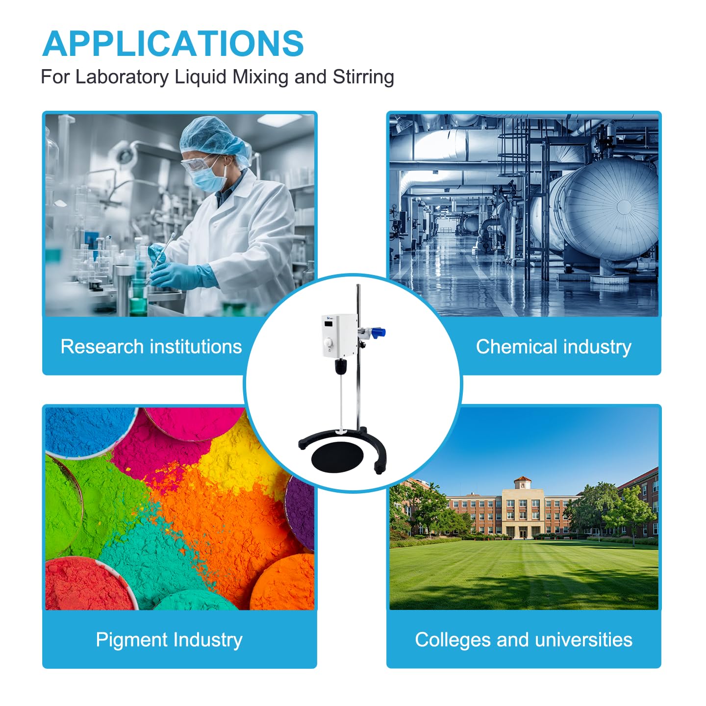 WIDELY APPLICATION: The overhead stirrer is used in laboratories,university,industries, and so on. If you have any problems with the mixer,please contact us in time, we will reply you as soon as possible within 12 hours