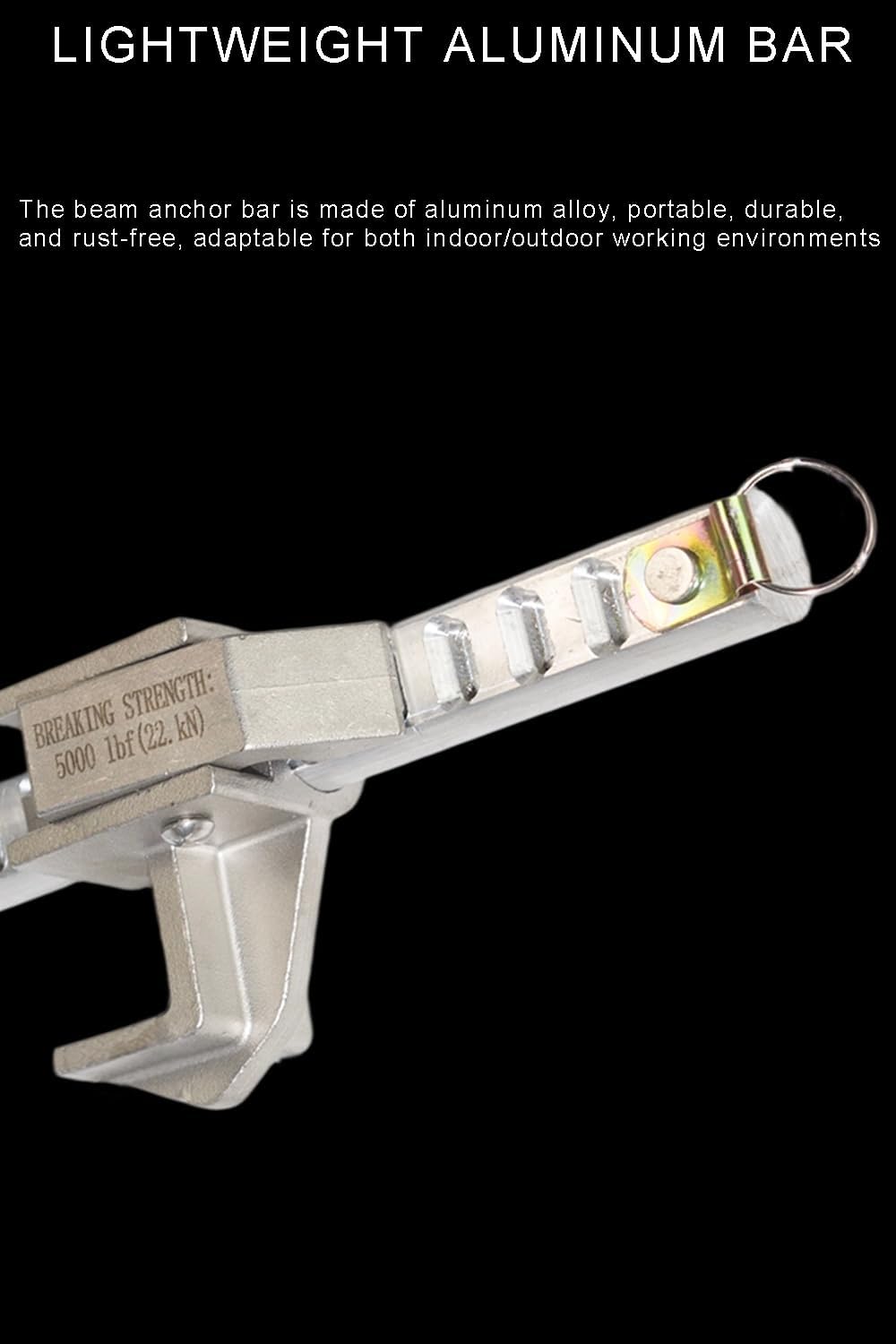 LIGHTWEIGHT ALUMINUM BAR: The beam anchor bar is made of aluminum alloy, portable, durable, and rust-free, adaptable for both indoor/outdoor working environments.