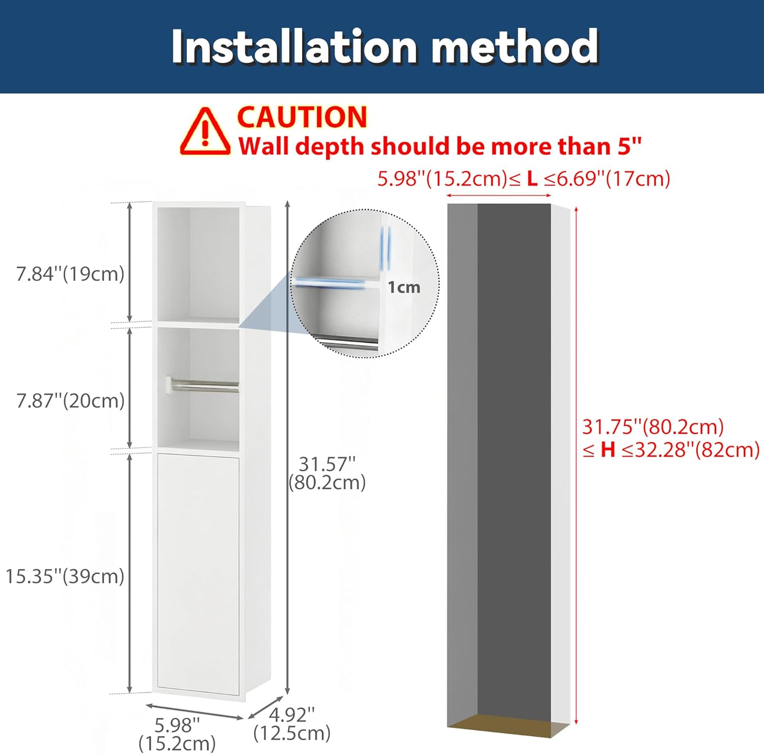 Recessed Wall Niche Design: This in wall toilet paper holder requires 5\'+ wall depth for installation. The recessed toilet paper holder recessed toilet paper storage niche accommodates toilet paper rolls or brushes, keeping bathroom essentials organized and accessible while flush with your wall