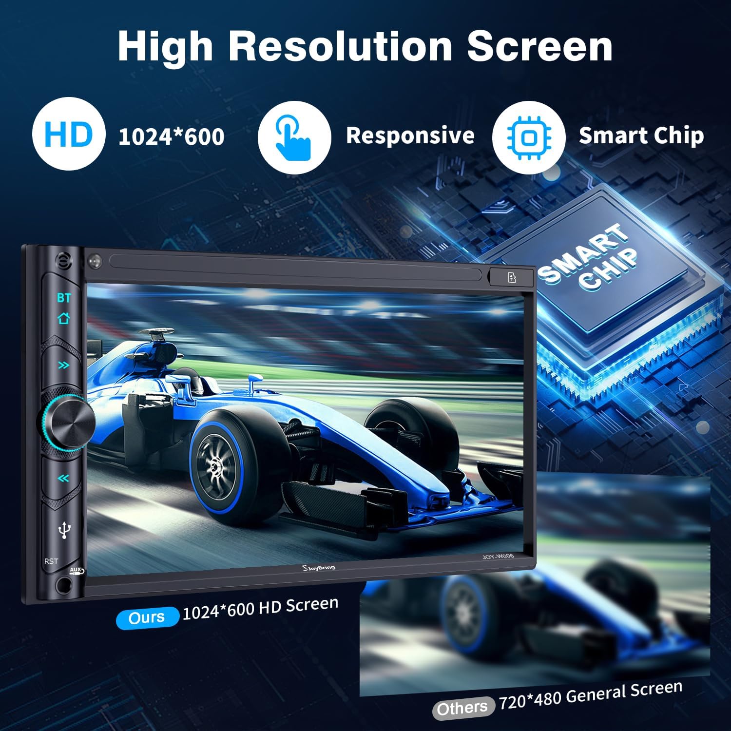 Mirror Link and HD Screen with Panel Function Buttons: Supports IOS & Android phone for mirror link function, use the USB connection to mirror the screen of your smartphone and show Google Maps, Spotify, Youtube etc. in the big screen. Functions with 1024 X 600 resolution 7 inch HD touch screen, support 1920 X 1080P video playback. Physical buttons make it easier to use while driving, especially the rotating volume control.