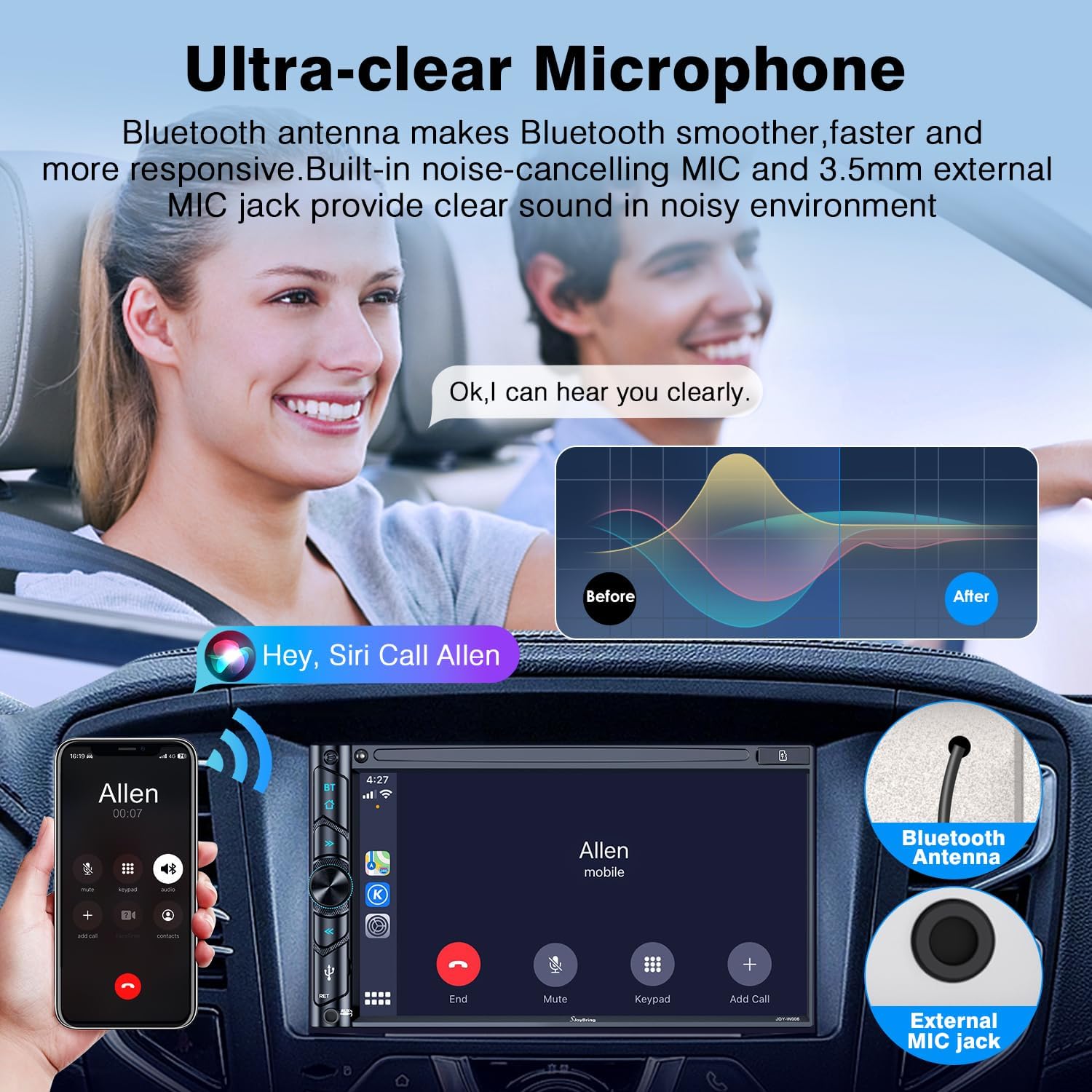 Bluetooth Function and Clear MIC: The latest Bluetooth is more stable, faster, smoother and clearer, enables wireless streaming of music, calls, MP3 players and more. The built-in ultra-clear microphone realize clearer calls and more accurate voice control, never distract you from driving, ensure safer driving.