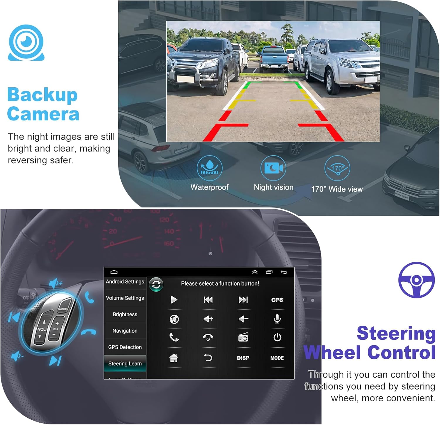 Enhanced Safety with Rearview Camera Support:Includes a 170° wide-angle backup camera input (camera not included) for safer reversing. The screen automatically switches when you shift into reverse, helping you avoid obstacles like pets, kids, or curbs—even in low visibility. (Front-view capable, but camera sold separately.)