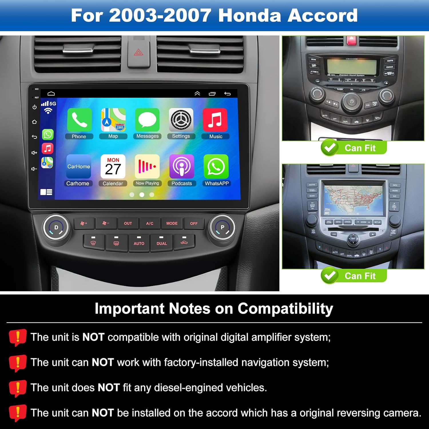 Perfect Fit for Select Honda Accord Model:Designed specifically for Honda Accord 2003, 2004, 2005, 2006 and 2007 models, this car stereo ensures a seamless upgrade. Before purchasing, please verify your vehicle’s center console dimensions and shape. Unsure Send us a message or photo—we’ll confirm compatibility for you!