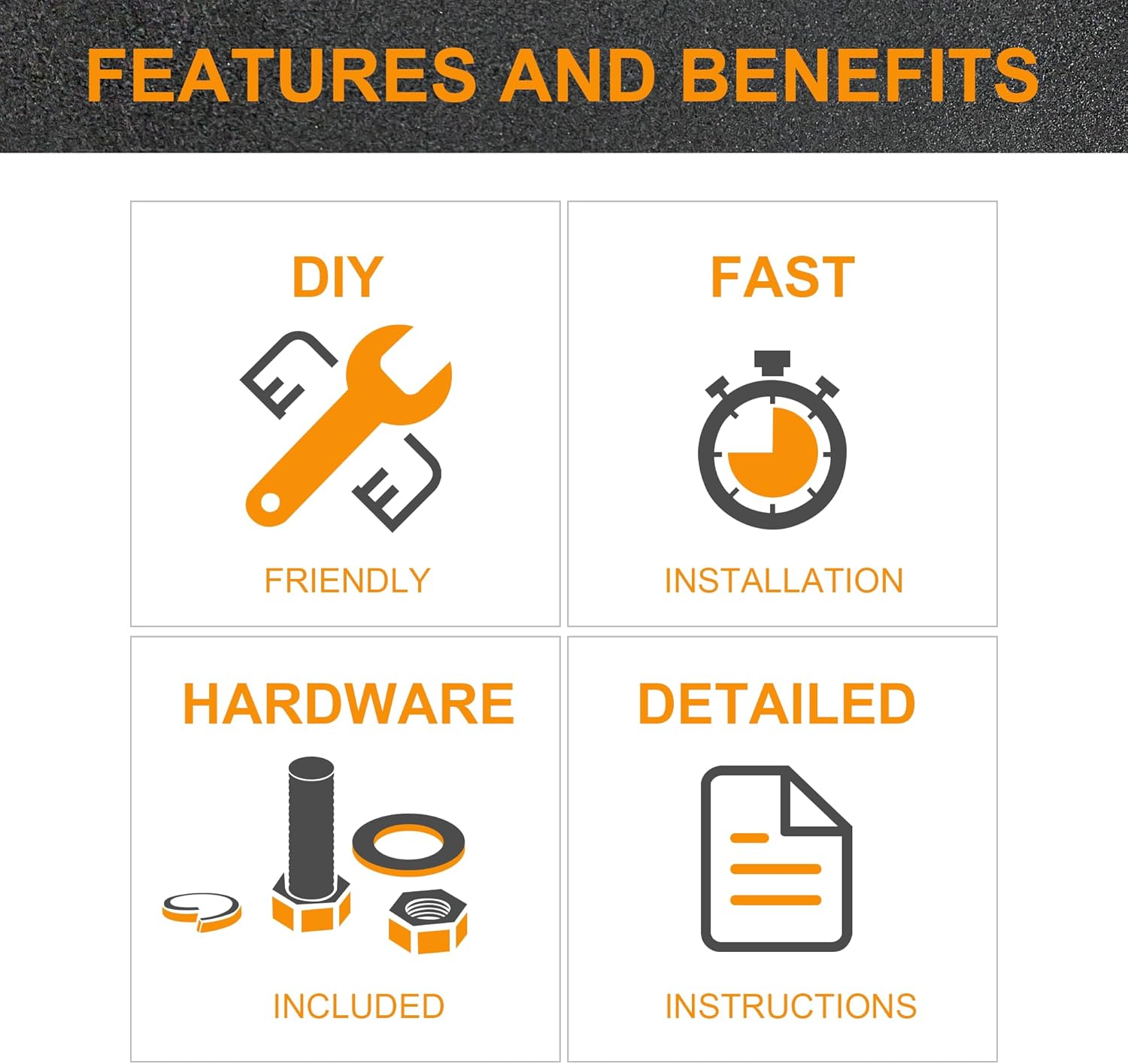 EASY INSTALLATION WITHOUT DRILLING — Simply secure with bolts. Comes with a detailed manual and all necessary accessories.
