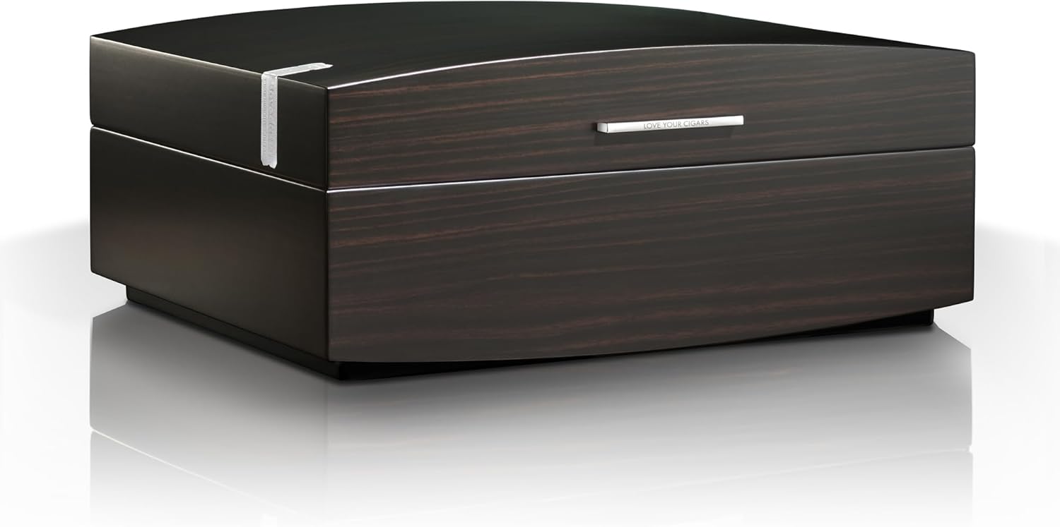 METICULOUS CRAFTSMANSHIP: Constructed from kiln-dried Spanish cedar with a striking macassar ebony matte finish. Luxe detailing includes chrome-plated recessed hinges, inscribed handle and hallmark seal.