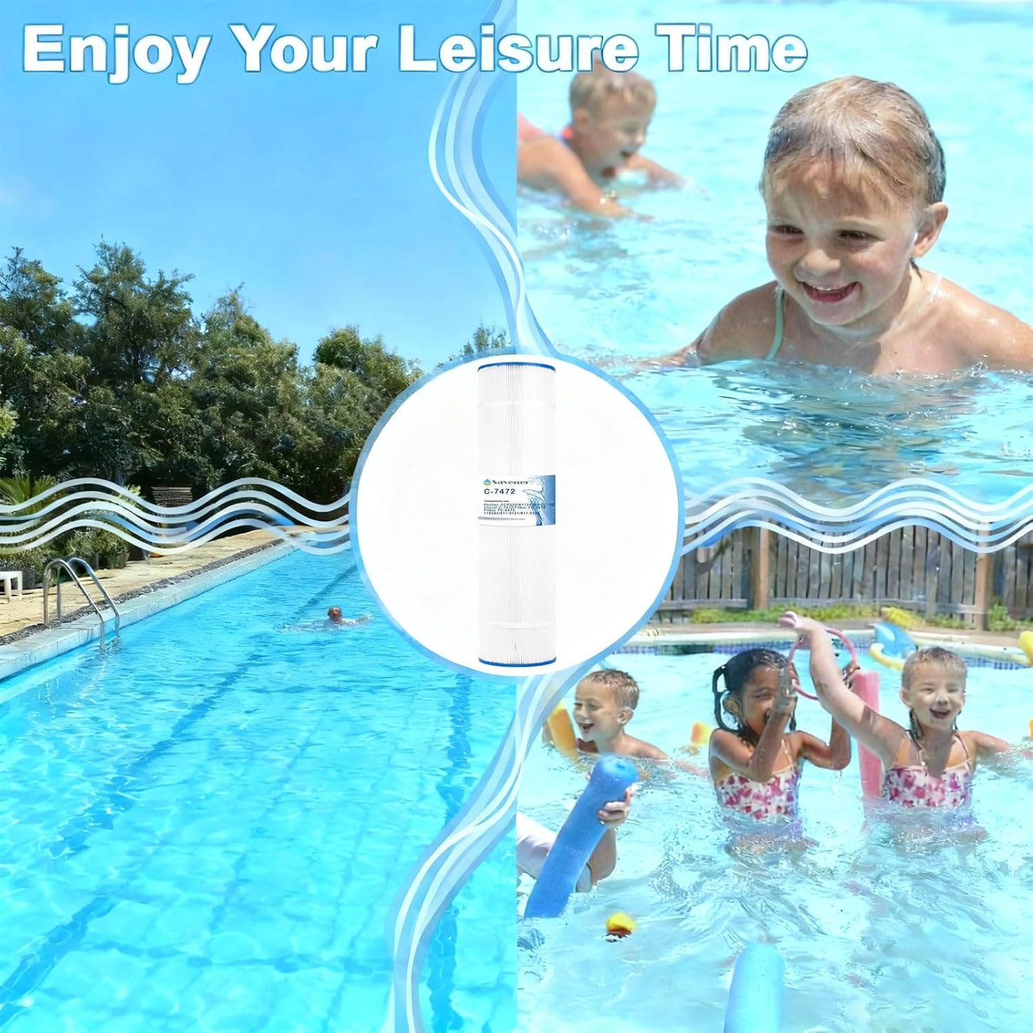 NSF/ANSI 50 CERTIFIED SAFETY–Savener pool and spa filter is tested and certified by IAPMO against NSF/ANSI 50 standards for material safety. All components are proven safe for long-term water exposure, ensuring no harmful substances are released.People in the pool fluttering splash, with the flavor of the sun, without a trace of turbidity concerns.