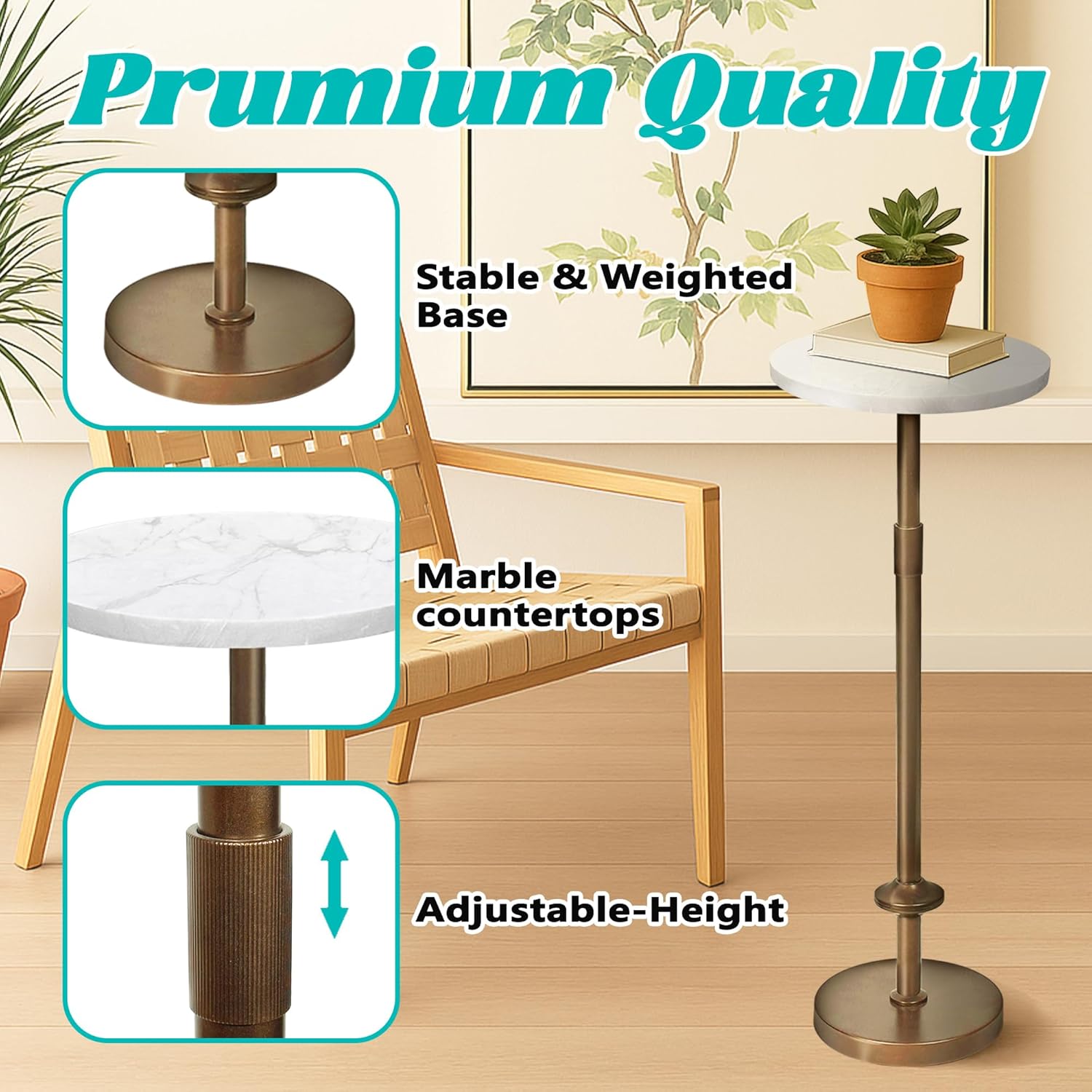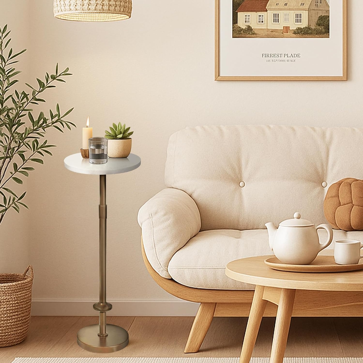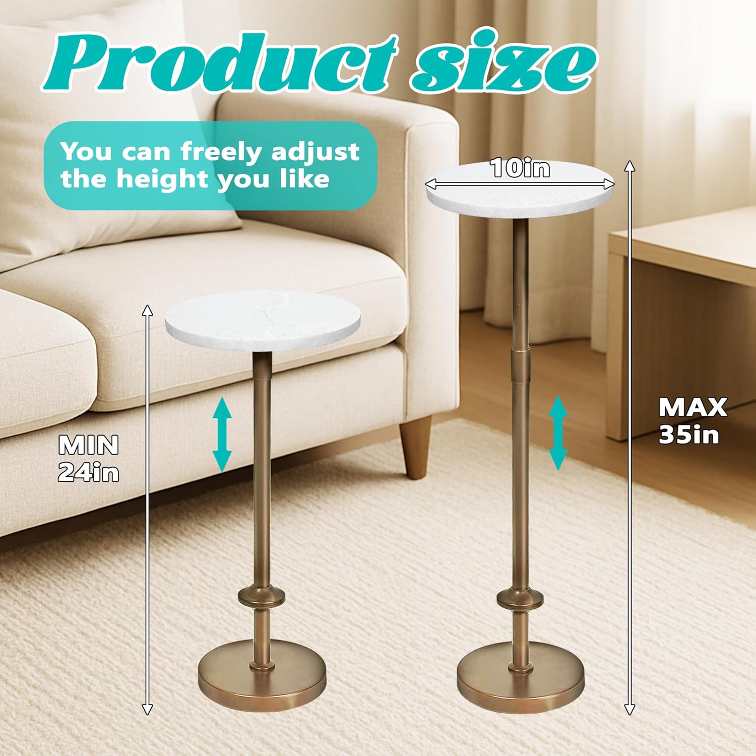 Martini Table Height Adjustable, Tiny Side Tables for Living Room, Bedroom, Cocktail (White)