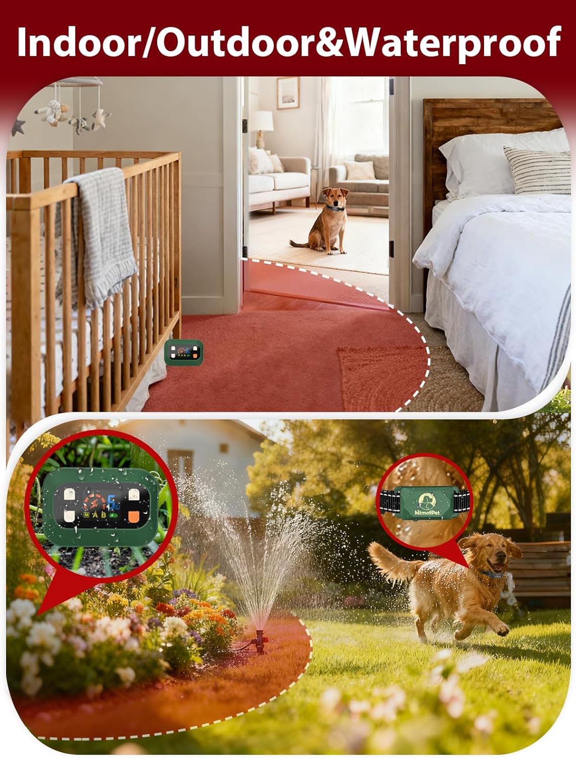 Indoor/Outdoor Use & Waterproof:Unlike other indoor pet barriers for dogs, MIMOFPET is perfect for both indoor and outdoor settings. With IPX7 waterproof, it withstands water splashes or rain, so you can confidently use it anywhere—protecting spaces like gardens or patios without worry.