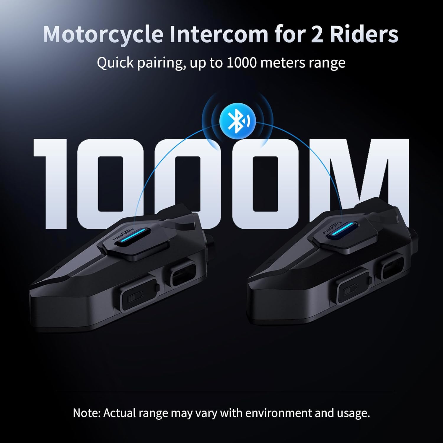 Crystal-Clear Long-Range Communication: The Fodsports T5 features an advanced motorcycle bluetooth intercom system supporting 2-rider communication up to 0.62 miles, making it ideal for couple. Its helmet intercom technology ensures stable, interference-free conversations even at highway speeds