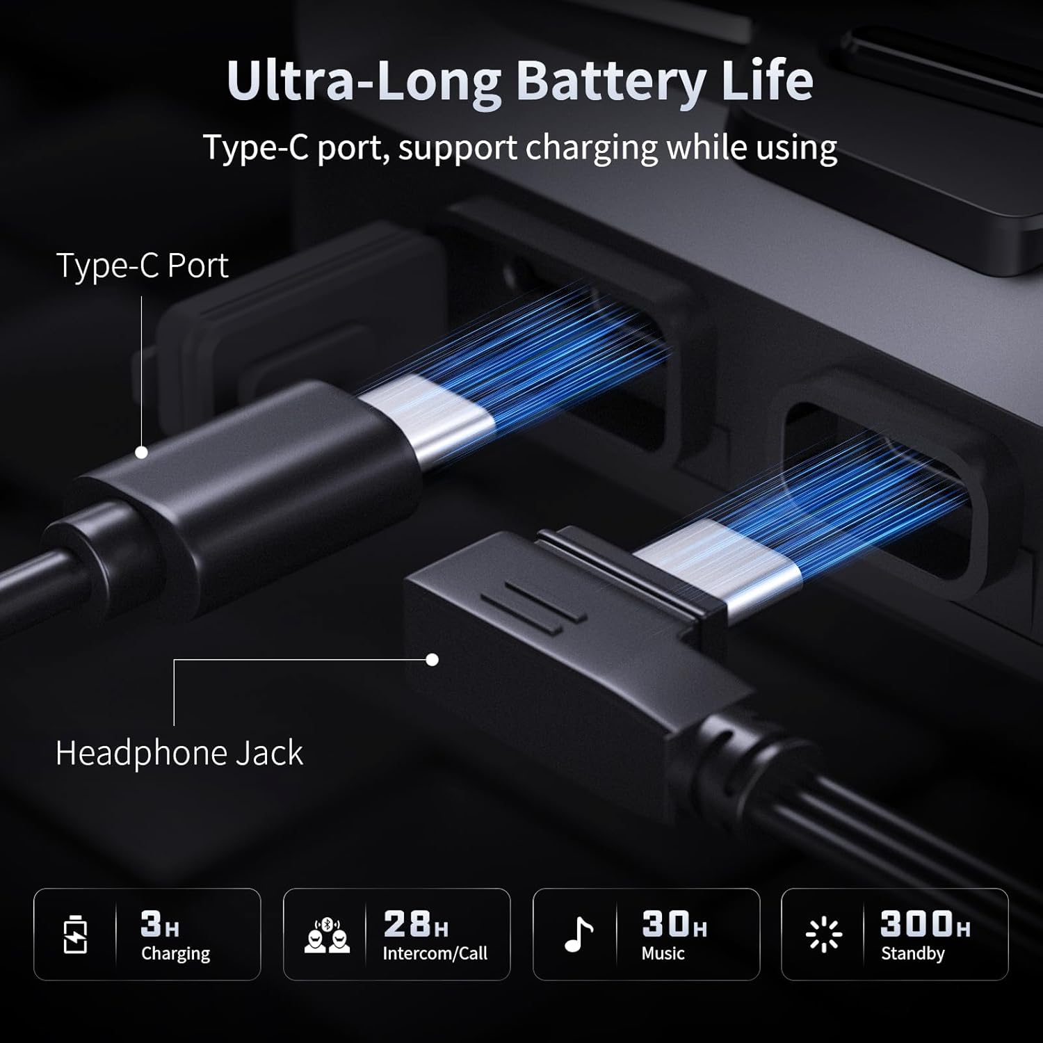 Multilingual Voice Prompts & 30H Battery Life: Stay informed in your preferred language with built-in voice prompts in 9 languages (English, German, Japanese, French, Italian, Spanish, Portuguese, Polish, Russian). Enjoy up to 30 hours of continuous use on a single charge—perfect for all-day rides and multi-day adventures, making it an ideal all-season motorcycle communication system