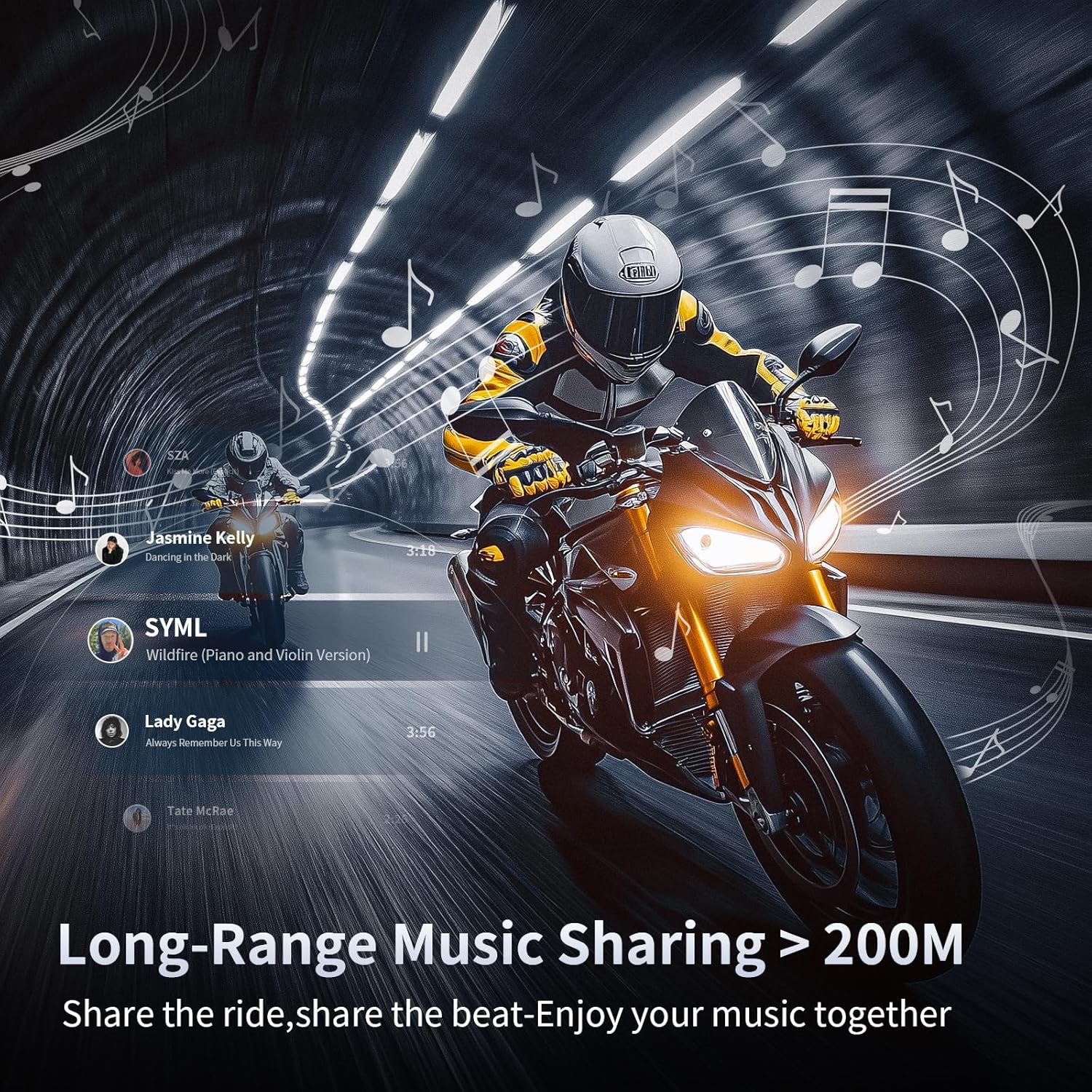 Music Sharing & FM Radio: The T5 motorcycle intercom lets two riders share music with a range of over 0.12 miles—much farther than standard bluetooth headsets, which are limited to just 32 feet. Paired with a built-in FM radio, it adds more entertainment and makes long rides more enjoyable, engaging, and full of shared moments